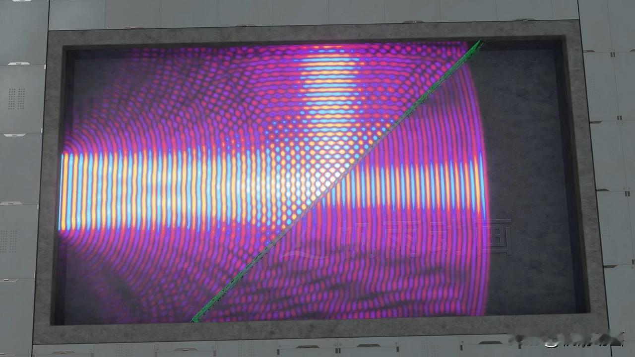 一列波射到一块45度角放置的平板玻璃上,它将被分为两半。 一半穿过玻璃,而一半被反射。 这样,我们就能把一列波分成了两列。#物理##光学#