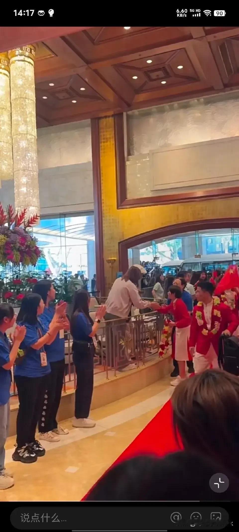 这位神秘的大佬是谁!为什么有专人带着潘展乐,莎莎,全红婵去跟他握手[赞] 今天奥运冠军们正式抵达香港了,开始为期3天的访港活动,进入酒店的时候,有三位运动员被专人引导去跟一位老爷爷握手了 这位老爷爷肯定是个大人物,他只跟三个人握手了,潘展乐,全红婵,孙颖莎,其中全红婵握得最久,还聊了几句[赞]