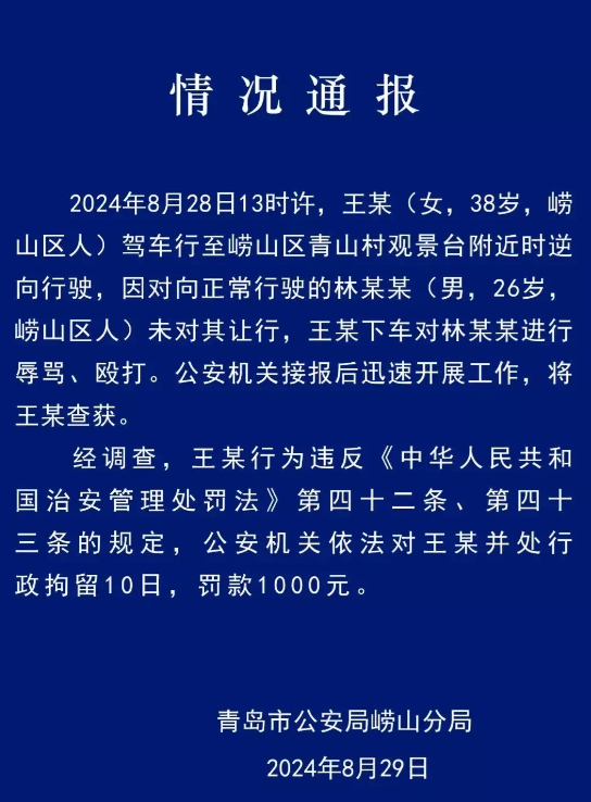 这通报绝了!虽然前面说了女的逆行,男的正常行驶,但是原因是因为未对其让行才殴打的,那到底应不应该让行?这个违法是两个违法事件,逆行违反交通法,打人违反治安管理严重的会涉及刑事,交通法逆行有没有处理?打人只罚款1000,拘留10天的依据是什么?