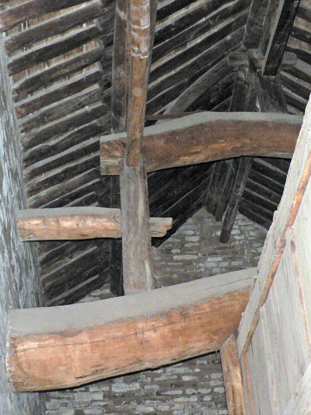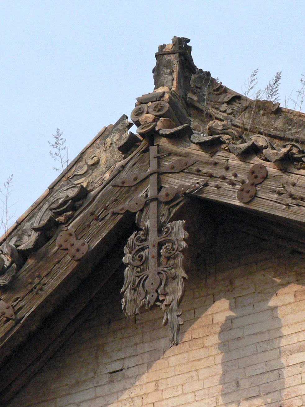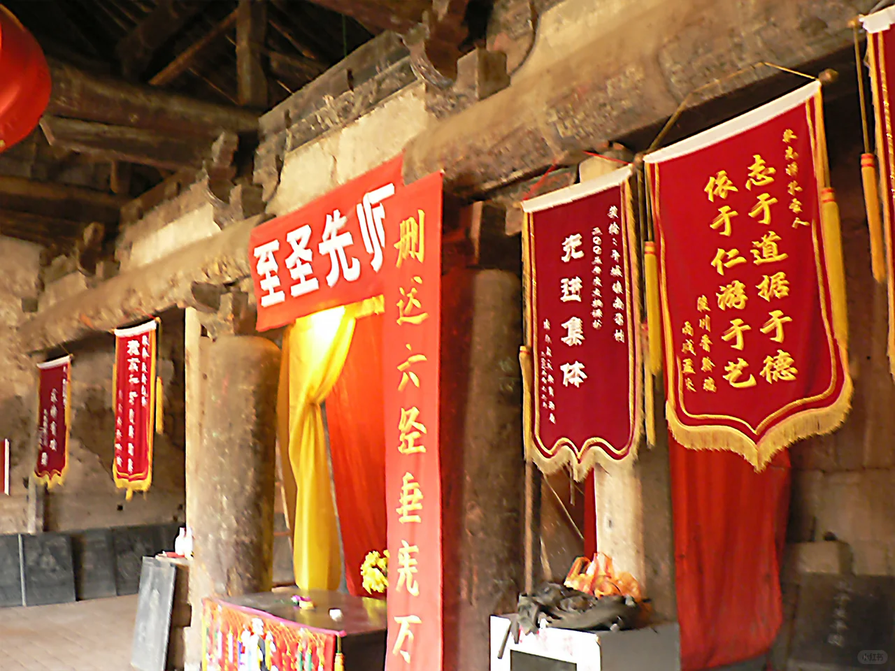 [自拍R]其中正殿为元代建筑,面阔五间,六架椽屋四椽栿对乳栿用三柱,前檐的柱、额似乎都是清代更换,还在四椽栿下增加一排柱子隔出前廊,殿内用减柱造,减去次间两根内柱,次间和梢间共用一根大额承次间屋架,明间施绰幕枋承托两侧大额,视觉上明间形成一个低矮狭窄的龛室空间,次间梢间反倒是粗大内额支撑的高敞空间。