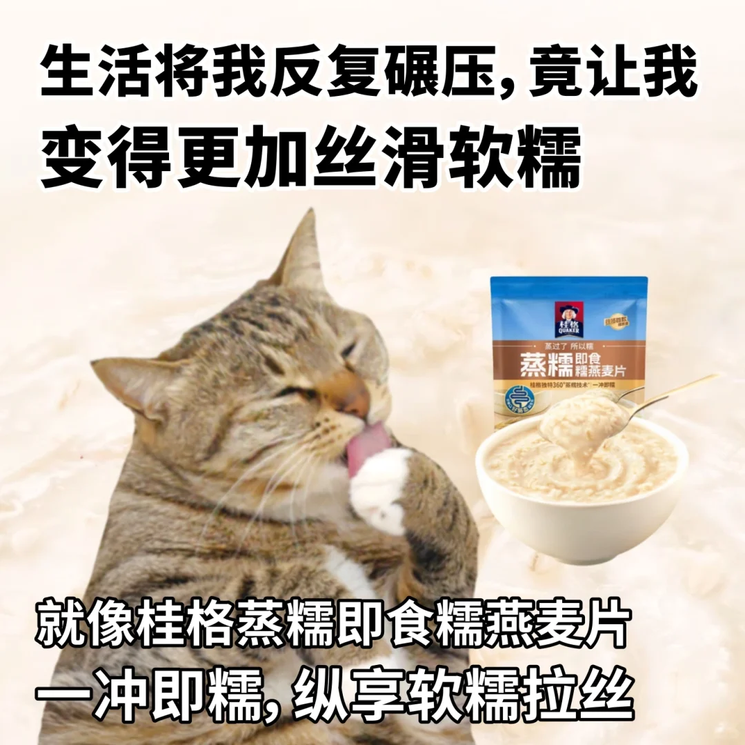 我爱马铃薯,因为我每天听到起床闹铃,都想马上薯 我爱巧克力,因为我乖巧刻苦又努力 我爱贝果,因为我们同样内馅丰富却表面低调 我爱烤肠,因为我们同样便宜廉价,压力大会爆 我爱糯燕麦,因为我也是性格简单、内心软糯 生活将我反复碾压,竟让我更加变得丝滑软糯拉丝...就像桂格蒸糯即食糯燕麦片一样,成分简单,一冲即糯,口感软糯顺滑~含有桂格家纤维Q益生元,轻卡轻负担!现在桂格蒸糯和美心还有合作活动,去美心门店购买面包,就能领取一包桂格蒸糯糯燕麦哦~