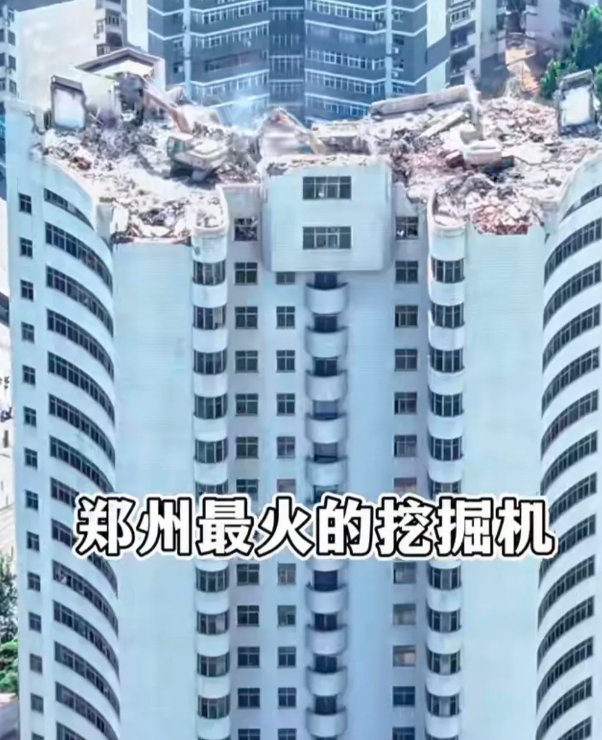 郑州热电厂几十层高的办公大楼正在拆除,上面几台大型挖掘机更是抢眼,很多人惊奇不已,挖掘机是怎么上去的?