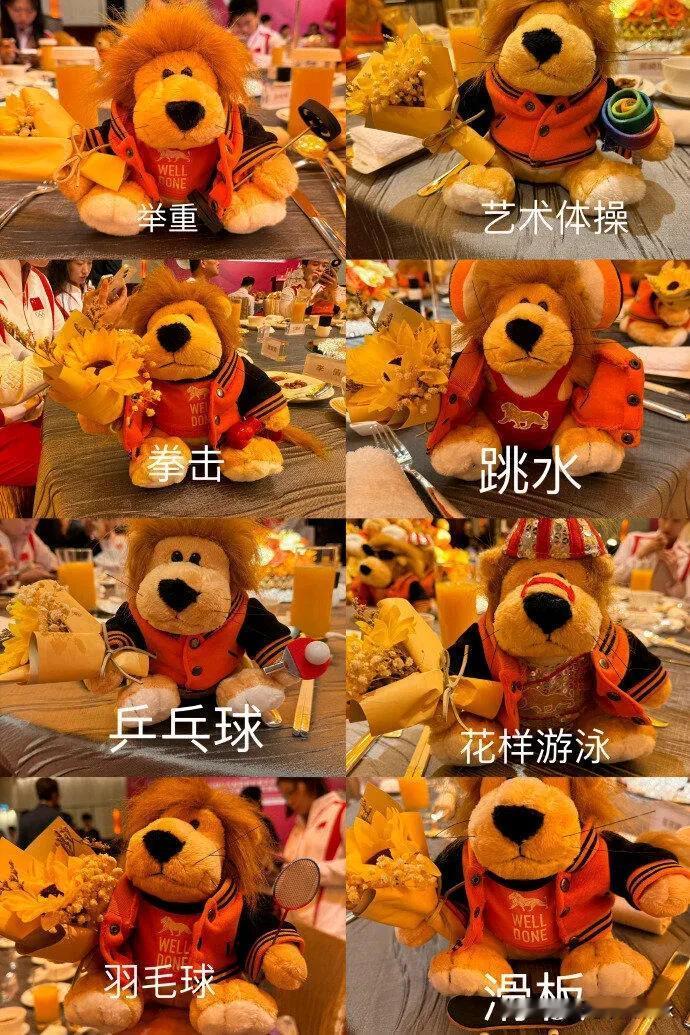 澳门真的很用心了,不光菜品都是奥运元素,送的小狮子后面还有运动员名字[赞] 澳门不光第一站就送奖金,而且菜品真的很用心呀!到处都是奥运元素,奥运五环,金牌,还有针对各个项目整的菜品,既美观又美味(美味不知道,我没吃[偷笑]) 最后给奥运冠军们送的小狮子玩偶,也是精心设计的,每个项目都不一样,每个人都不一样,玩偶背后还有运动员的名字,真的是私人定制的[赞][赞][赞]