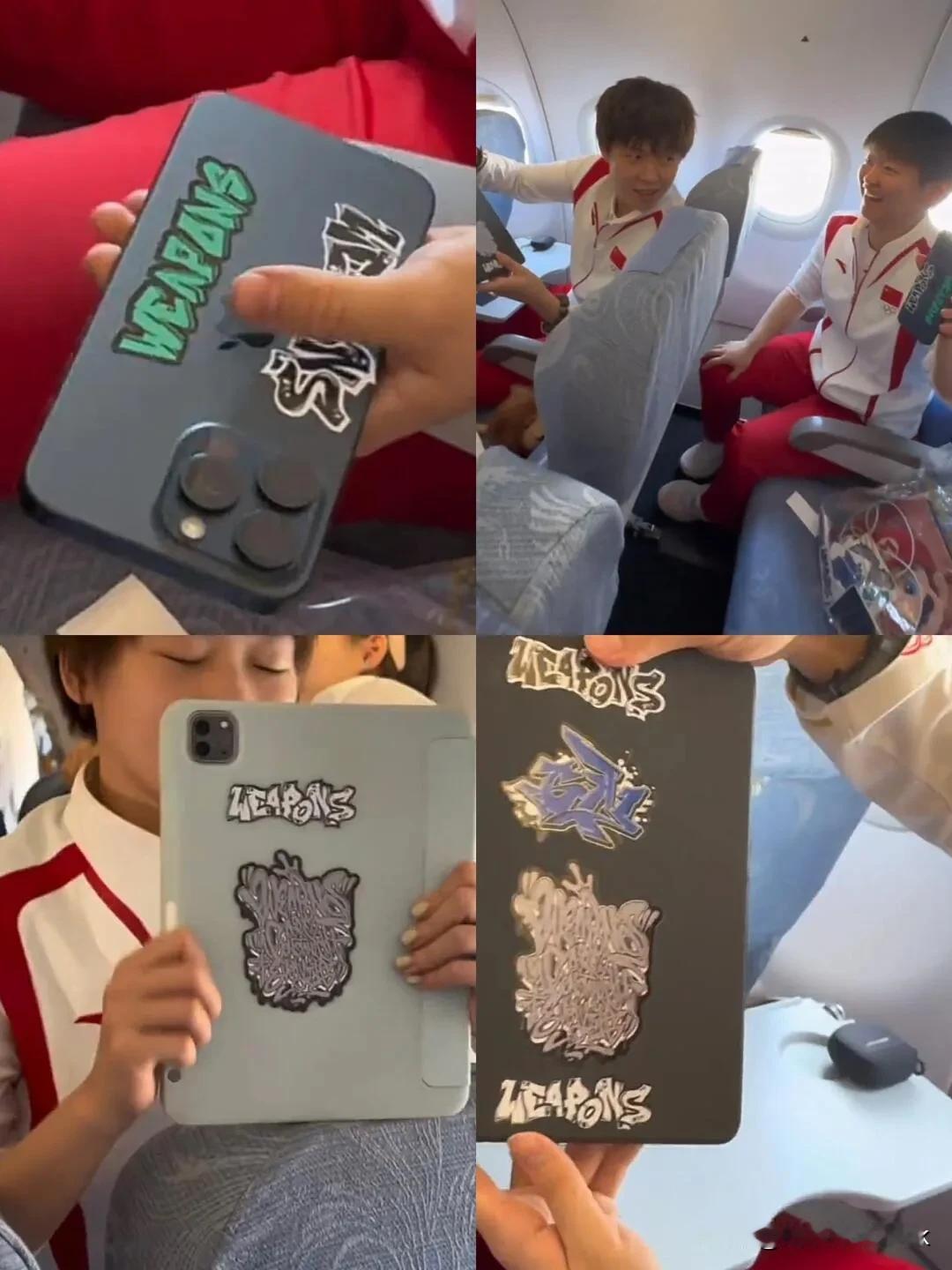 莎莎拍了一下大头的椅子,大头立马转过来说我这比你猛[偷笑] 现在好朋友好搭档已经放弃抵抗了吗? 莎莎:看, 我贴成这样 大头:我这比你猛 莎莎:哈哈哈 你看一眼 大头看了一眼 还是说了一句 大头:你这也可以[捂脸] 我的天啊!莎莎,人家贴手机壳,平板壳,你直接贴手机上,哪天不喜欢了,是换手机还是加个壳儿呀!就你最单纯[偷笑]