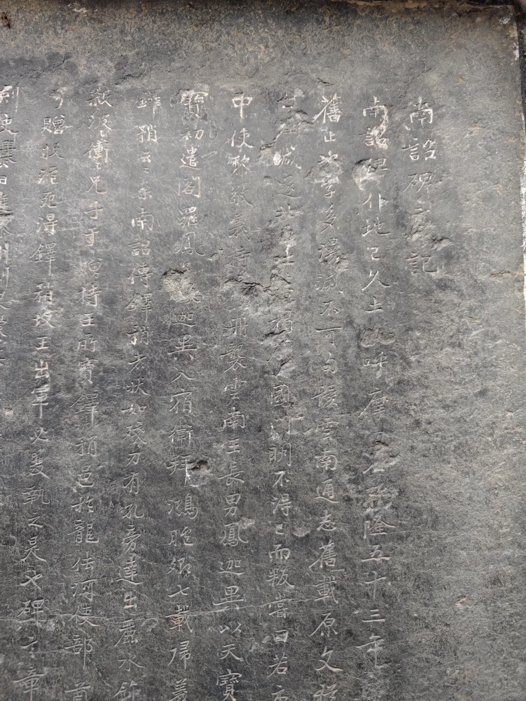 [自拍R]南诏德化碑现为免费开放的景区,碑外建有保护亭,旁边墙上有清嘉庆三年的《南诏碑亭记》(图14-15)记载了乾隆五十三年金石学家王昶重新发现此碑,嘉庆三年分巡迤西道李亨特建碑亭保护的历史。太和城遗址(含南诏德化碑)于1961年公布为第一批全国重点文物保护单位。