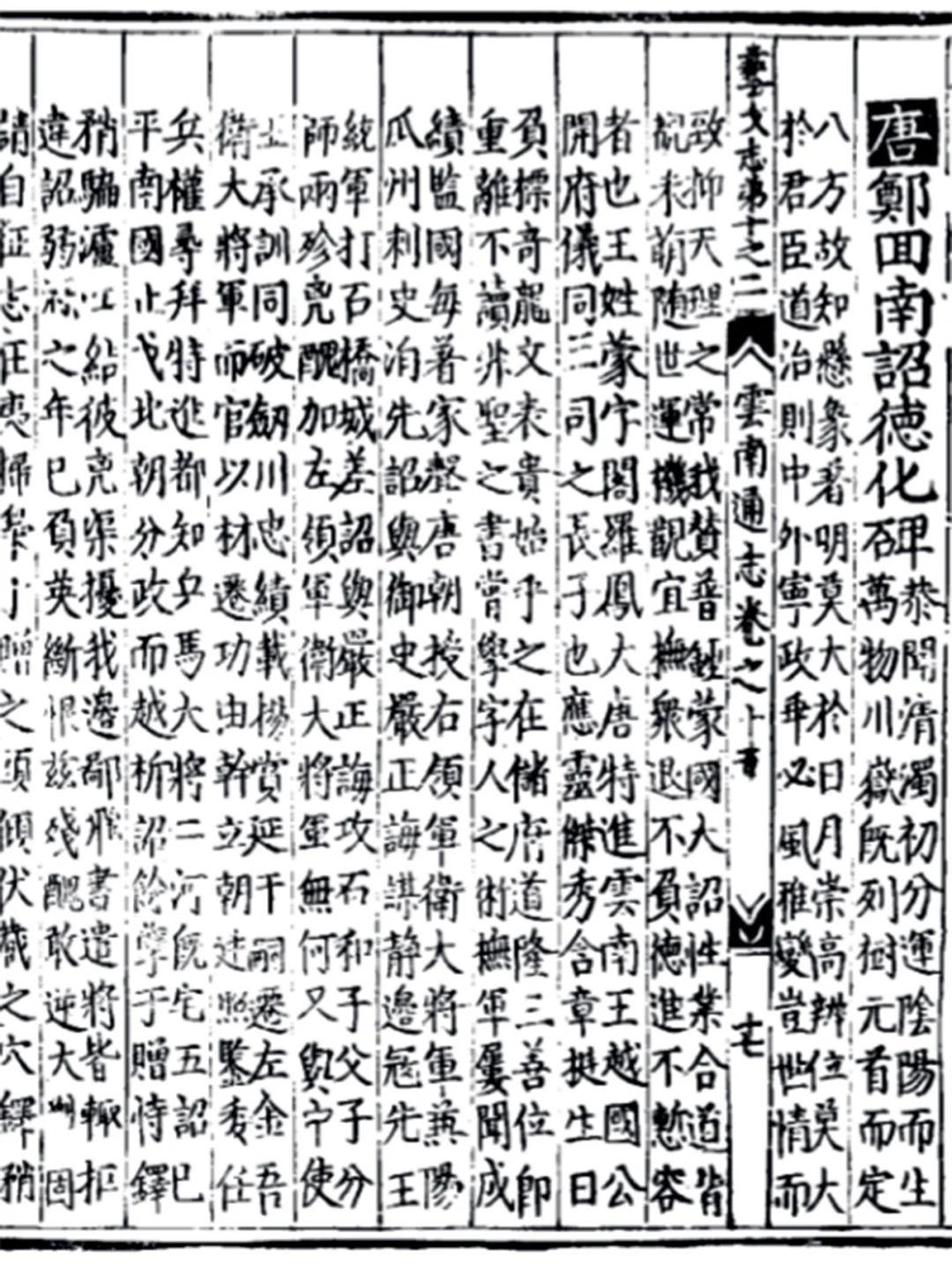 碑阳记录了南诏国兴起的历史及其与唐朝和吐蕃的关系,具有重要的历史价值,正文原有3676字,完整记录于明万历《云南通志》中(图13),至清代仅存600余字,因民间传说碑石可以治病,被村民凿取石片,现仅存约200字。