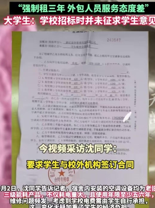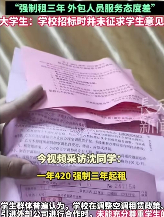 想当初,我们上学时哪有这档子事?一年420元的租赁费,还得是三级能耗的老旧空调,这钱花得,心疼啊!