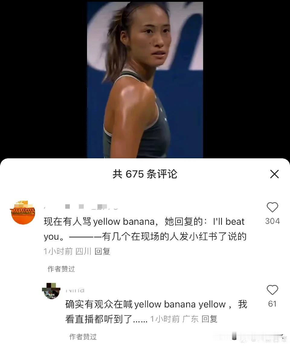 郑钦文好样的,回怼的时候眼神坚毅得可怕,太棒了![赞] 美网现场有观众骂yellow banana,郑钦文回应:I'll beat you ,那个眼神要鲨人[偷笑] 我记得奥运的时候也观众在看台上辱骂,郑钦文从来不惯着,一句"SB"送出去,同样眼神坚定的像入党 如今郑钦文的实力有目共睹,肯定会有好多人看不惯,没关系,用实力打服他们[赞]