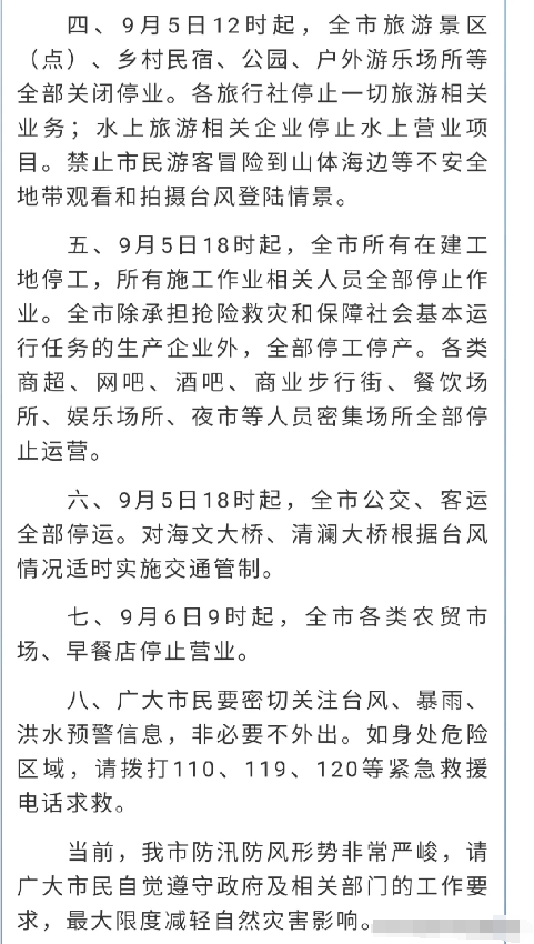 目前海南文昌已经发布“五停一关”通告,将于今晚开始分批实行停工停课停业等措施,广东湛江和茂名已经启动防风Ⅱ级响应,后面也可能宣布停工停业。距离台风登陆还有一天多的时间,请海南东北部和雷州半岛的朋友们立即加强防范。