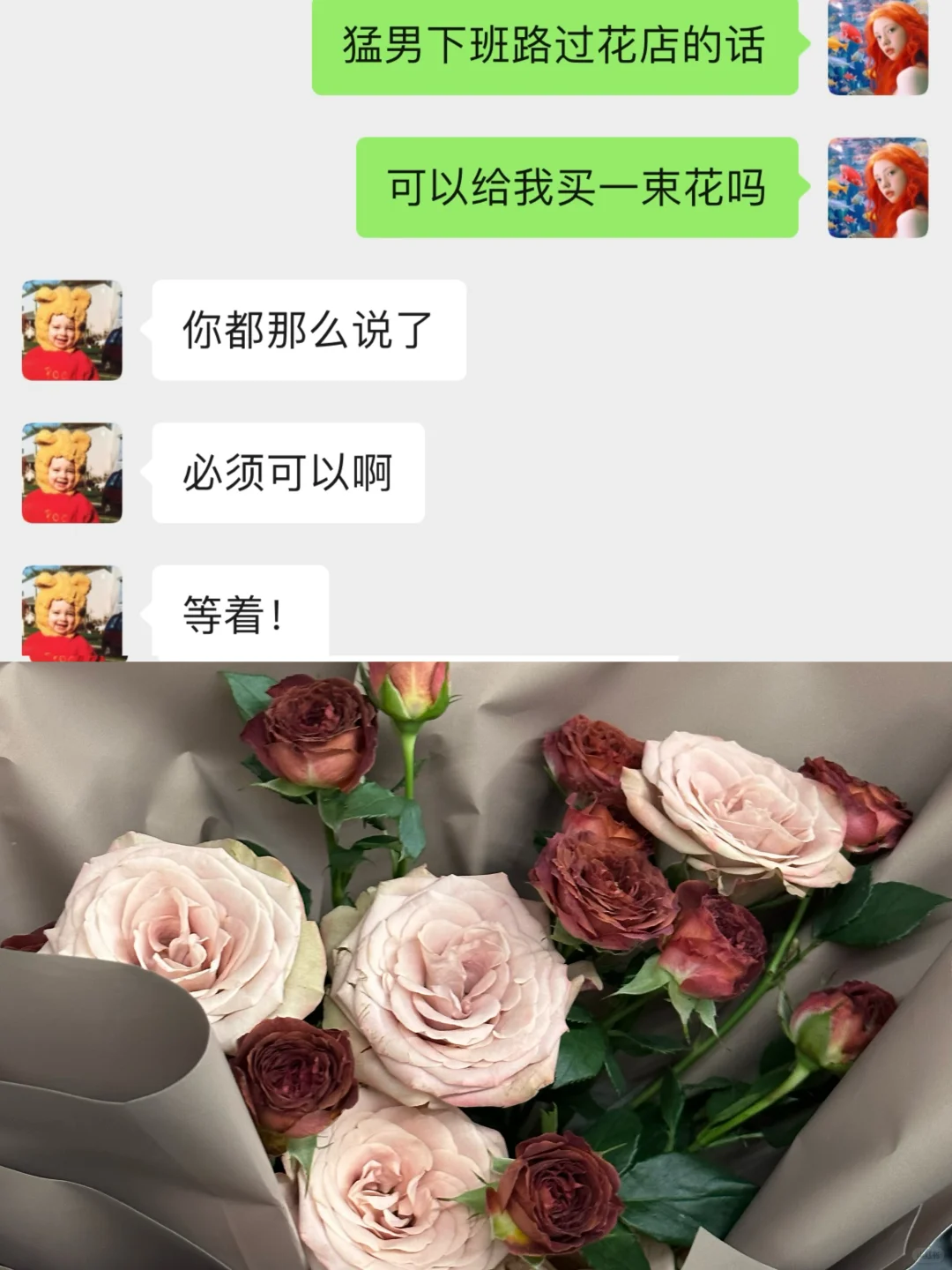 老公,下班回来你能给我买束花嘛?你的品味真的不错,上次你给我买的花我发到朋友圈好多人给我点赞!