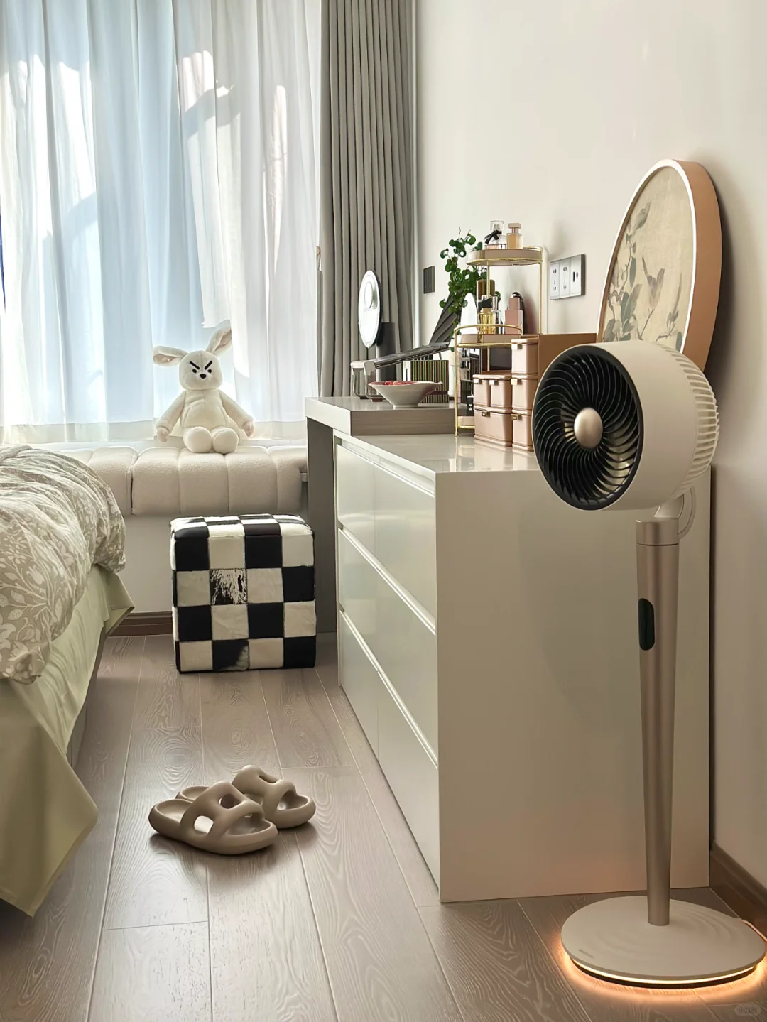 风扇很轻音不扰眠,夏天还可以搭配空调用