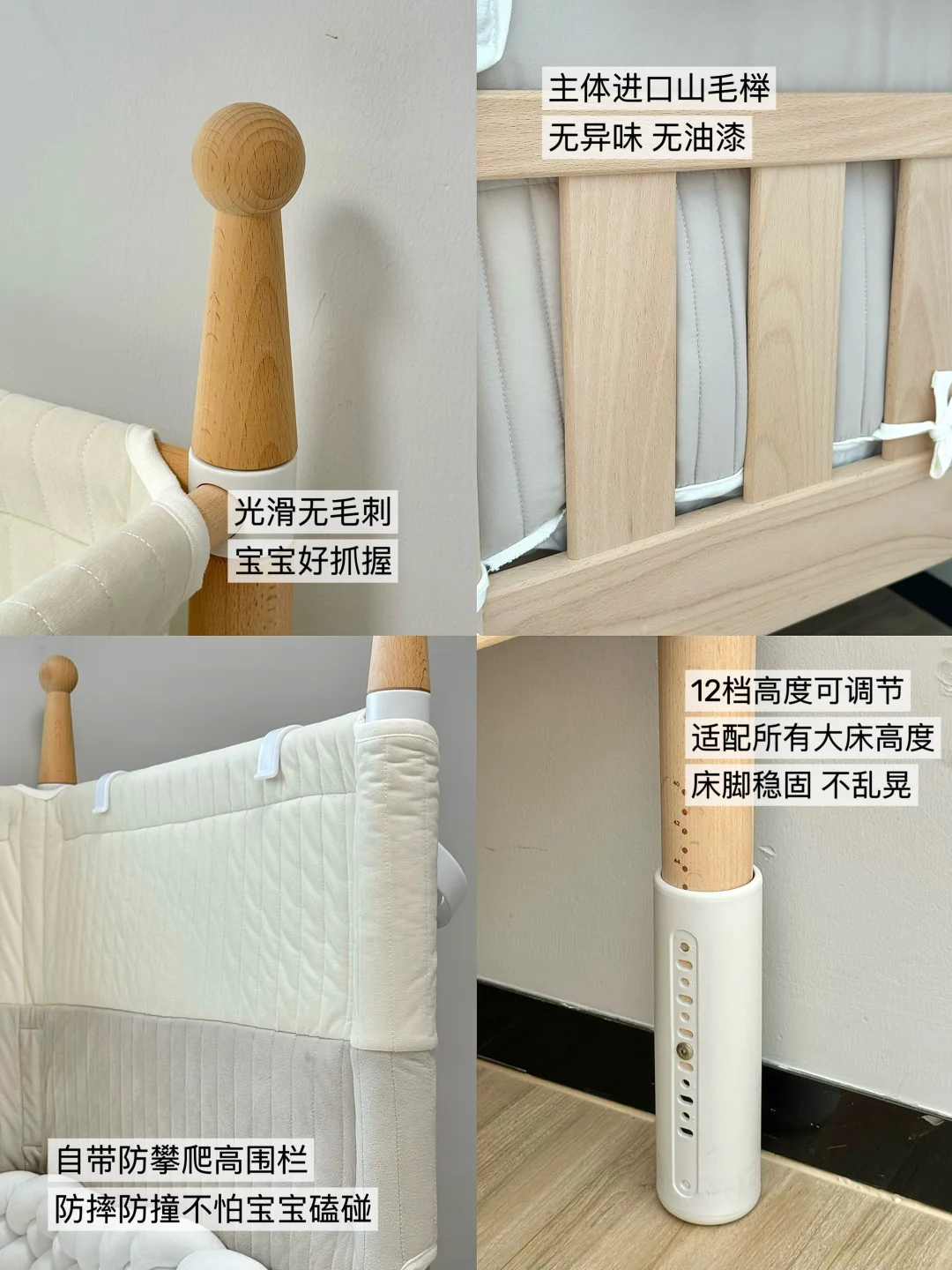 0-6个月宝宝用低护栏,家长抱起放下、哄睡,平时喂奶都很方便