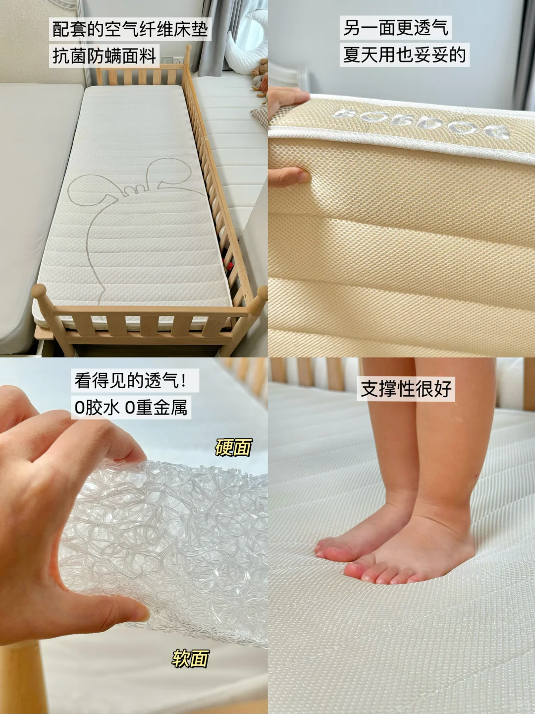 ✅床垫配了巴布豆空气纤维床垫,0胶水0重金属!软硬两面可用,还可水洗~睡着超舒服~而且用了快3年完全没有下陷变形!