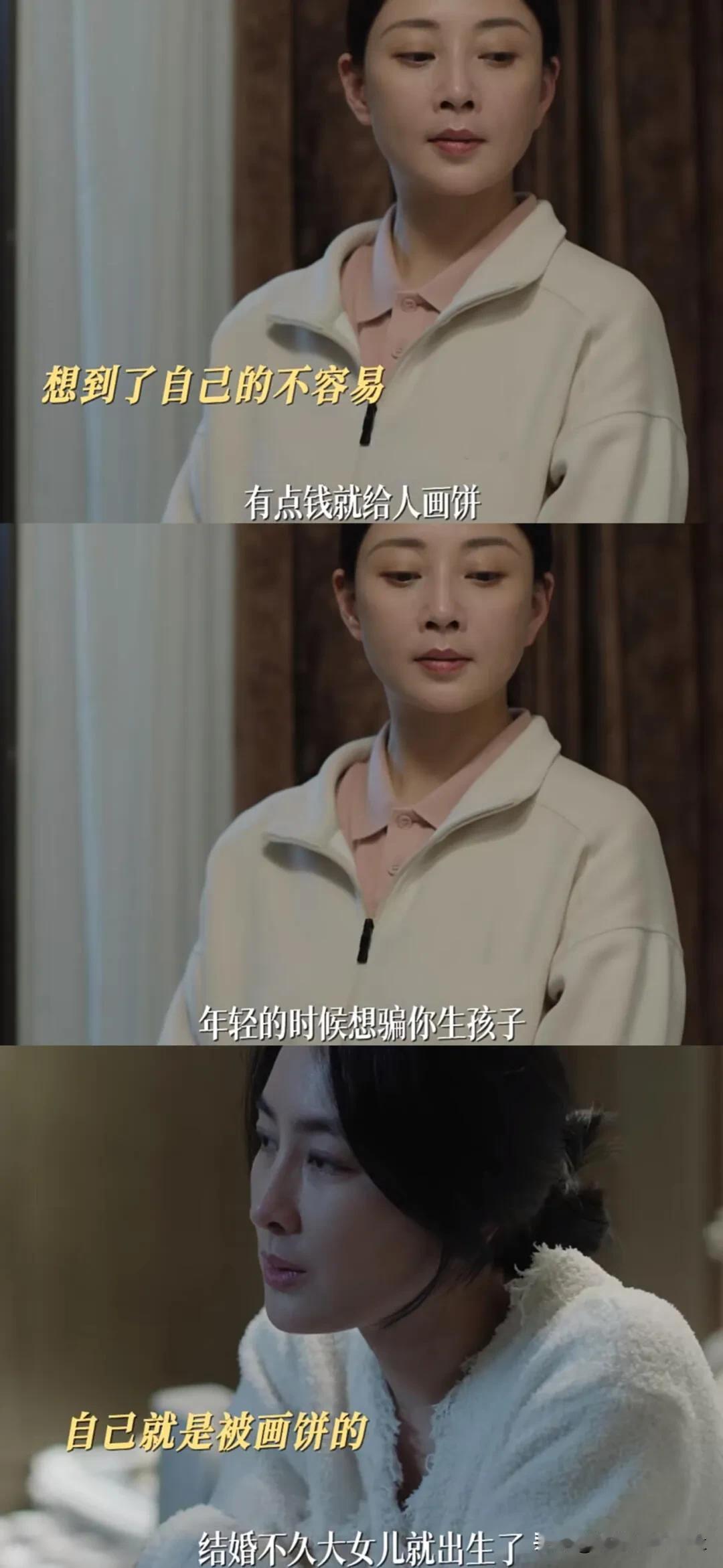 《凡人歌》白寒宁最好的几年一直在生孩子,或许这就是嫁豪门的代价[灵光一闪] 沈琳做月嫂在前同事家,表面上风光无限好的前同事,其实也过得不如意,一直在生孩子带孩子,终于生到儿子了,她也40岁了 到底是哪一步走错了,其实她哪一步也没有走错,她过得算不错了,有保姆月嫂,至少不用为钱担心 还有很多职场妈妈,边带孩子,边上班,还要被婆家指责没生儿子,或者儿子成绩不好也指责,老公不听话也指责