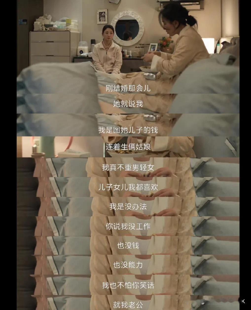 《凡人歌》白寒宁月子偷吃葱油鸡,被婆婆翻出来一番数落,这就是嫁豪门的代价 婆婆天天让她喝汤,就是为了给儿子下奶,但是这么多天过去了,白寒宁还是没有奶,婆婆不放弃,继续逼她喝汤,不能吃别的 一天晚上,实在没办法,让沈琳给她做了葱油鸡,结果婆婆闻着味儿就来了,还掀被子,在被子里发现了葱油鸡,一顿数落,老公也不帮她 白寒宁挺惨的,嫁人之后一直在生孩子,现在40了,终于生儿子了,结果没奶,被逼当奶牛,老公还骚扰月嫂……