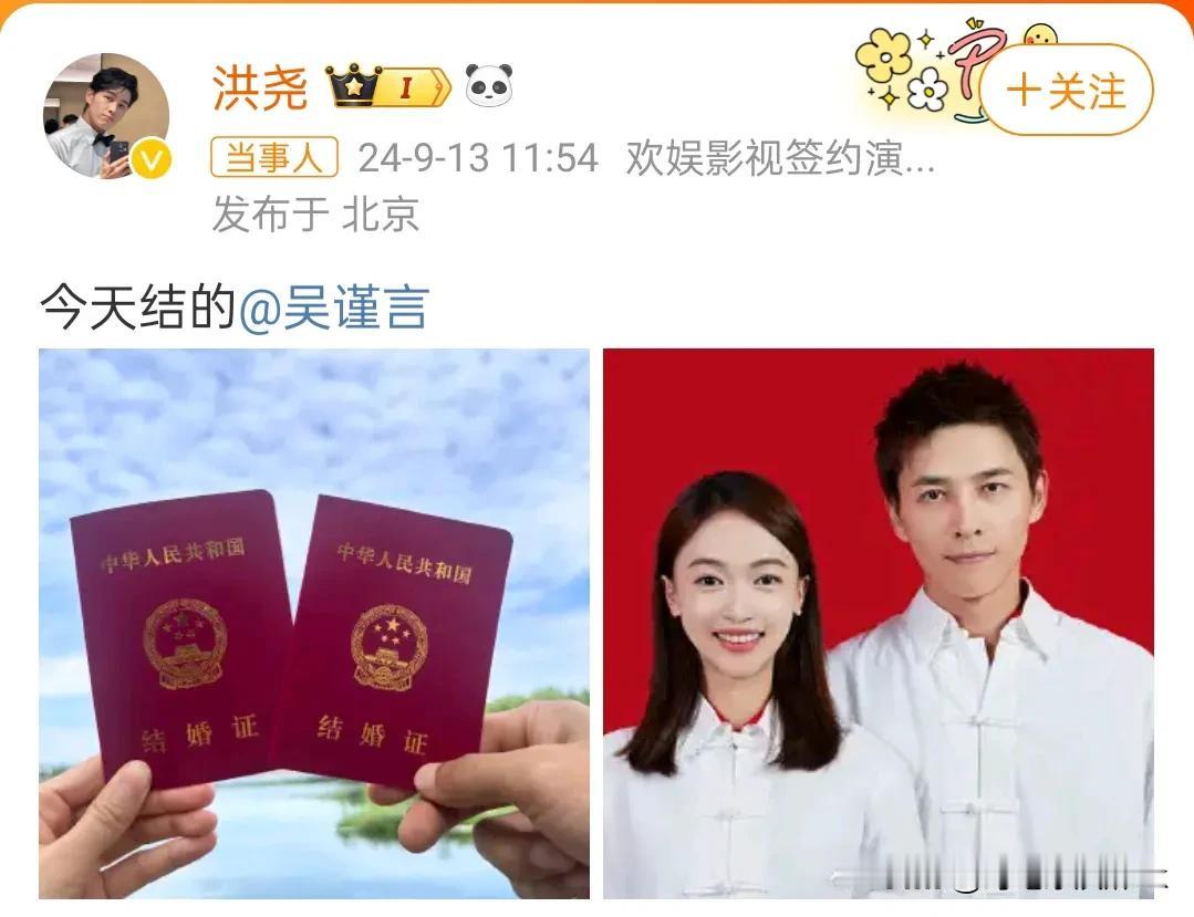 吴谨言和洪尧在一起7年了,竟然没有爆出口,领证了才知道,保密工作做的太好了 今天吴谨言和洪尧同时晒出结婚证,我以为是剧宣,没想到是真的,于正证实了,两个人在一起7年了,感情很稳定 真的佩服吴谨言,还在上升期呀!男方的咖位比她低很多,甚至好多人不知道他是谁?我还是知道哈,他是沈听白,是牙亲王 魏璎珞没有选择富察傅恒,没有选择大猪蹄子,最终选择了弘昼[捂脸]