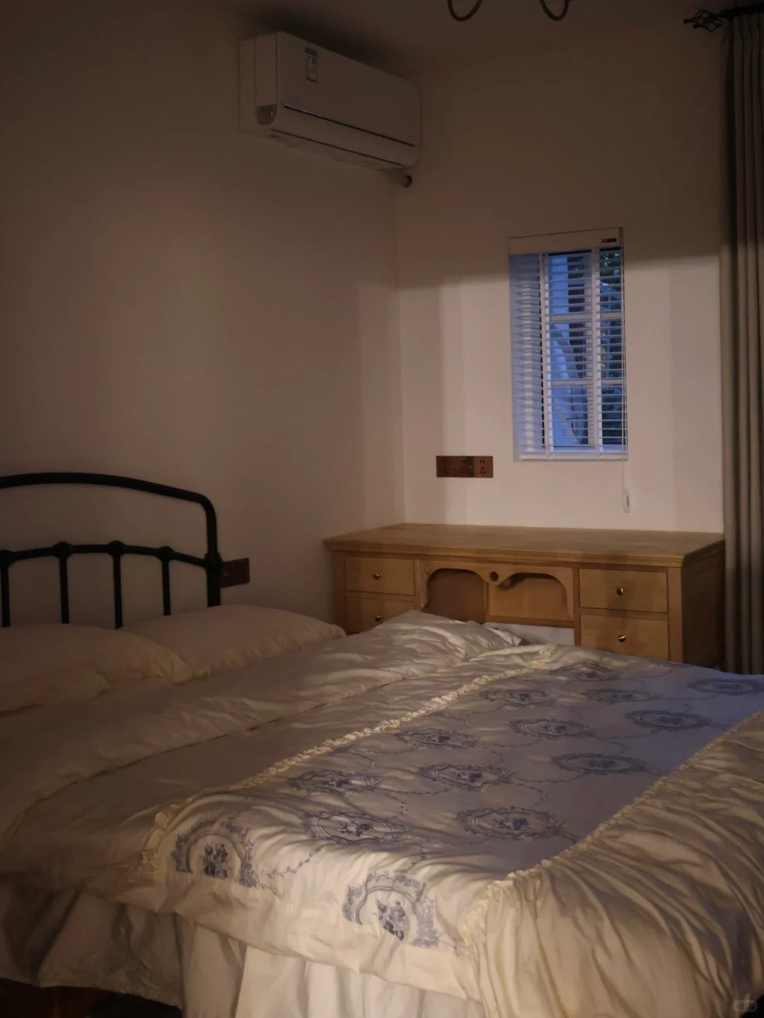 一张铁艺床 一张床垫 开启了小家的新生活 钱包是越来越空的 所以软装是循序渐进的 最近给次卧新淘了张实木书桌 露台买到了中意的铁艺桌椅 风格总算是搭上啦 从无到有 越来越接近理想的卧室 没有任何定制柜子的好处是可以随心搭配 接下来继续去寻找复古的衣柜和单椅 再diy或淘一些画 努力打造成喜欢的南法风格~