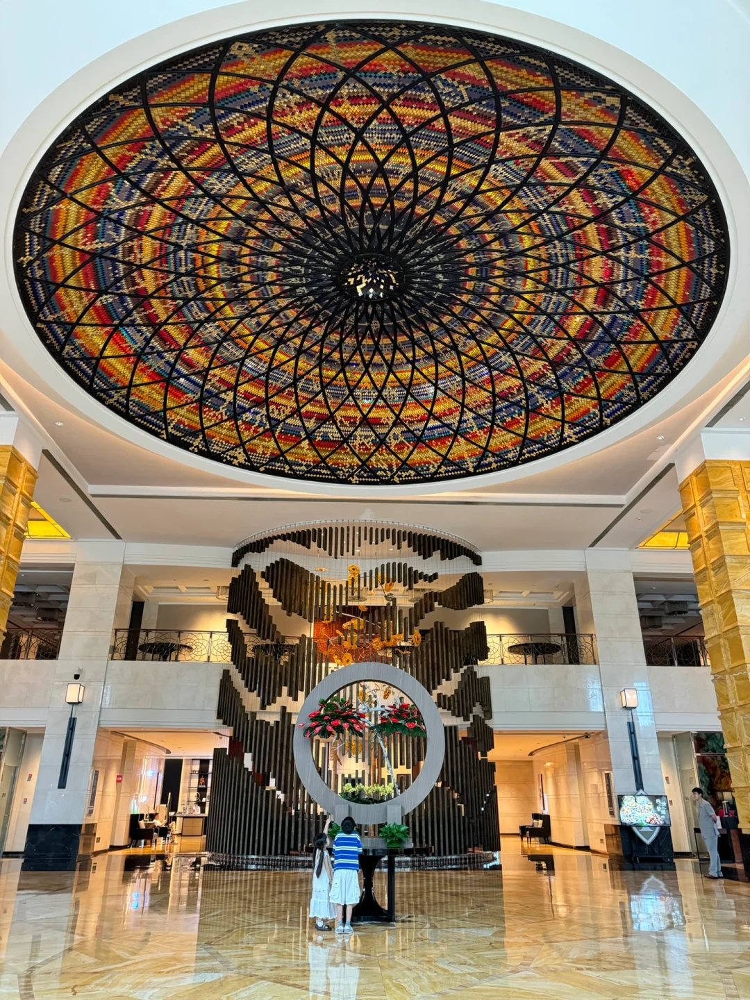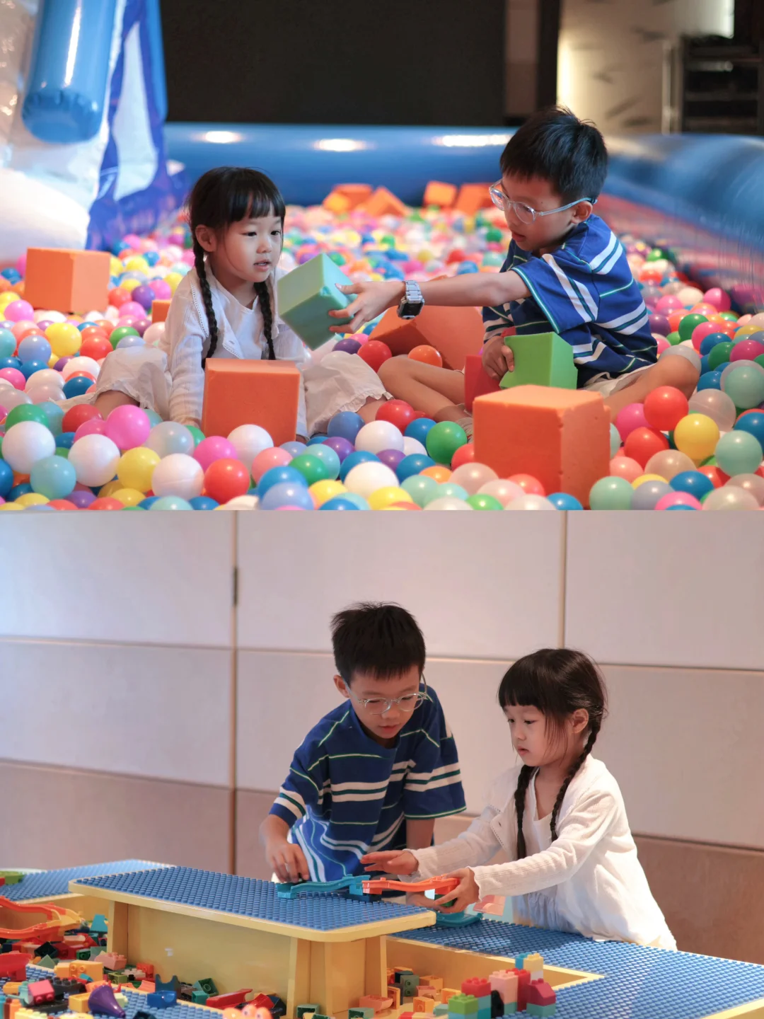 国庆假期带娃放电之旅! 我诉求是:不去人挤人!短途不累! 半托管不费妈!这次就选佛山 没想到呀!千灯湖晚上的夜景🌉也太美了 带娃来感受岭南文化,体验不一样的佛山 - 这次选择千灯湖旁的佛山保利洲际酒店🏨 带娃入住了积木主题亲子套房 超大玻璃窗可以俯瞰千灯湖的美景 多巴胺糖果🍬屋里面还可以睡哦 房间布置很贴心,🈶绘本、积木桌、宝宝洗澡玩具🛀儿童用品齐全,带娃出行很省心~ - 酒店极具岭南特色的装修风格,艺术氛围满满,大堂装潢富丽堂皇、抬头就能看到五彩玻璃穹顶,兄妹俩很好奇欣赏了很久,说话🗣还会有回音哦~ - 酒店内🈶海洋球王国、积木乐园、超大的泳池和健身房、还可以体验小小美食家,亲子DIY粤式点心(小鸡咸水角🥟杯子蛋糕🍰)小朋友可以根据自己的喜欢的口味添加材料哦,自己做的蛋糕,成就感满🈵~ - 傍晚带娃到酒店的4F的游泳池游泳🏊玩水打泡泡🫧战太欢乐了~ - 蚝情蟹逅主题自助餐!!非常值得 各类海鲜、烧烤拼盘、粤菜日料、三文🐟刺身、大闸🦀、芝士龙虾🦞炭烧生蚝、鲍鱼、皮皮虾等,品类丰富,还可以实现红酒🍷鸡尾酒任意喝的自由! 特别说一下,蟹黄醇厚浓郁,蟹肉鲜嫩清甜,简直是味觉的狂欢 - 楼下就是千灯湖公园,可以划船,晚上一定要去佛山网红西街的夜市逛逛,欣赏岭南特色光影,还🈶艺人即场唱歌,超热闹,氛围很好,千灯湖灯光秀的3D效果也非常震撼~ -