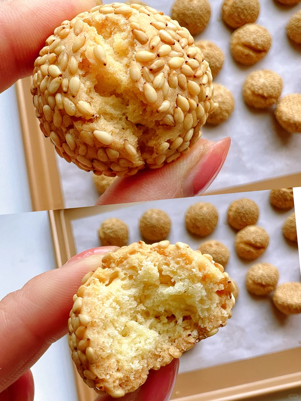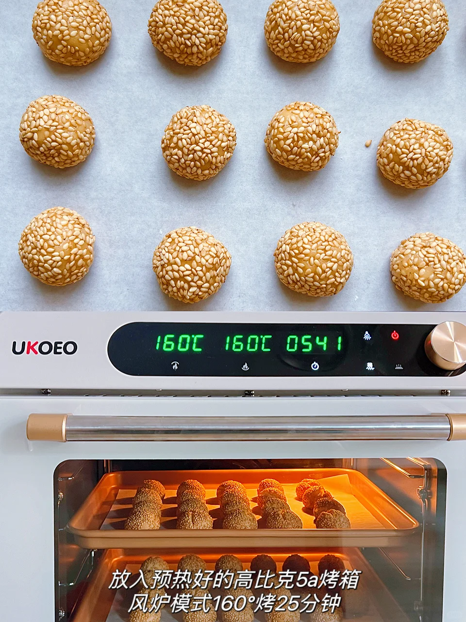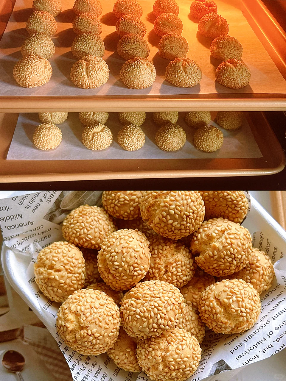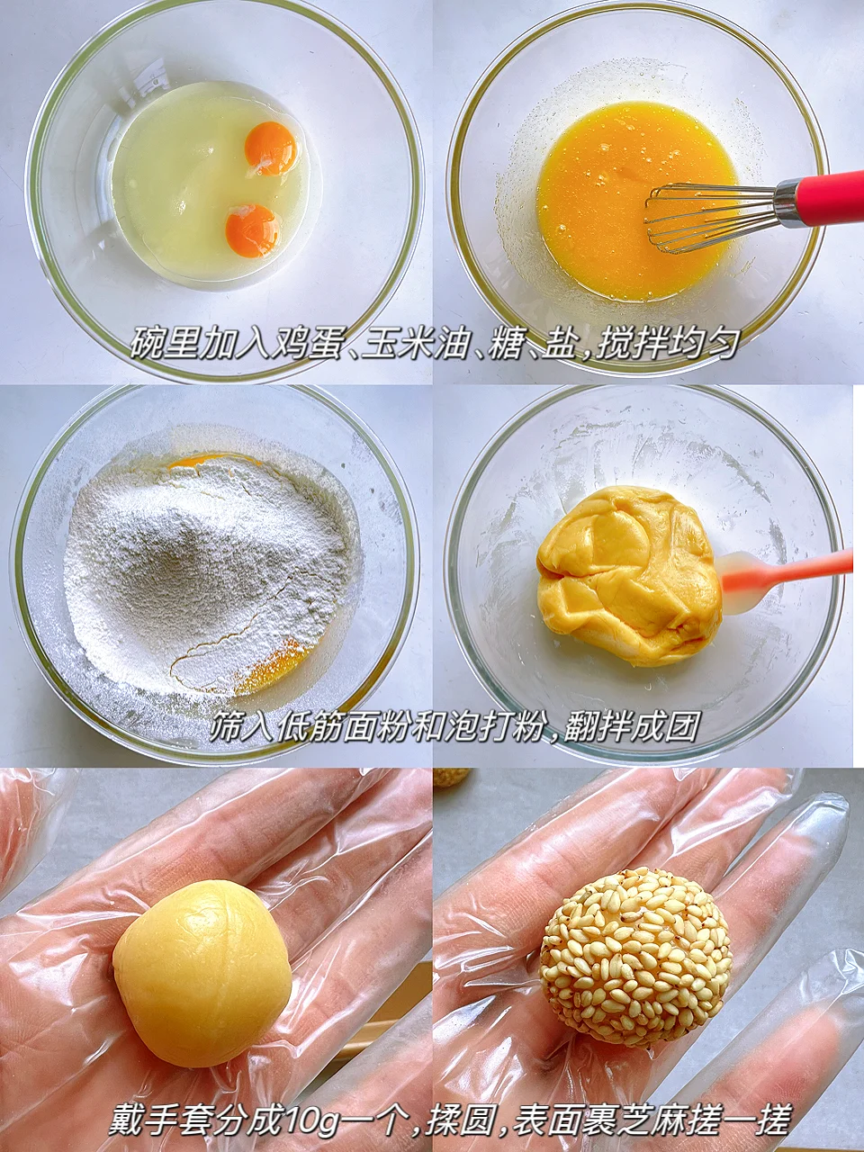 3️⃣戴手套分成10g一个剂子,揉圆,表面裹芝麻搓一搓