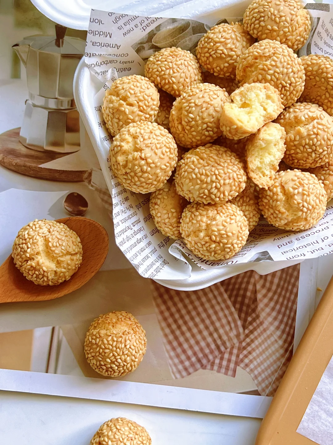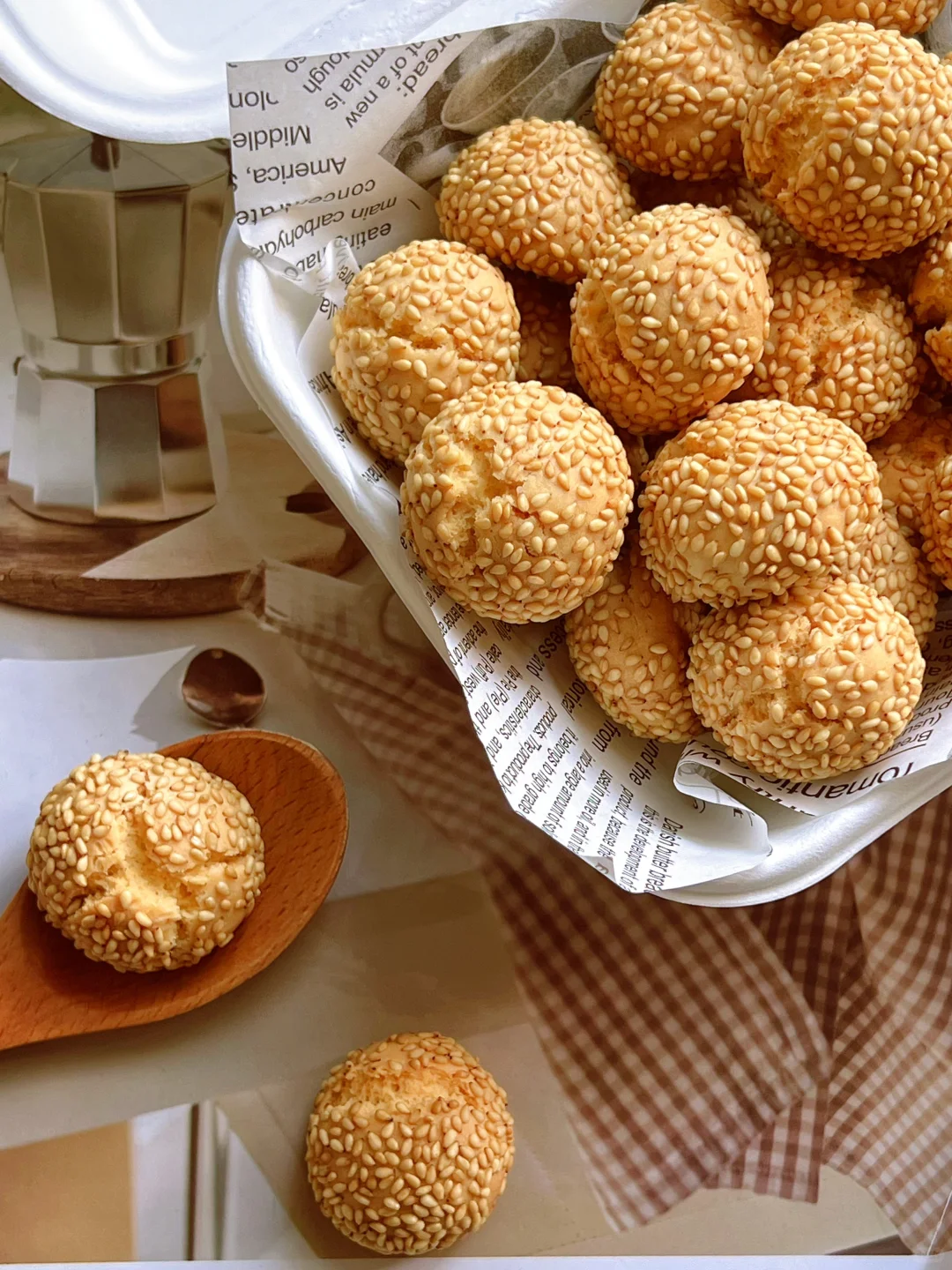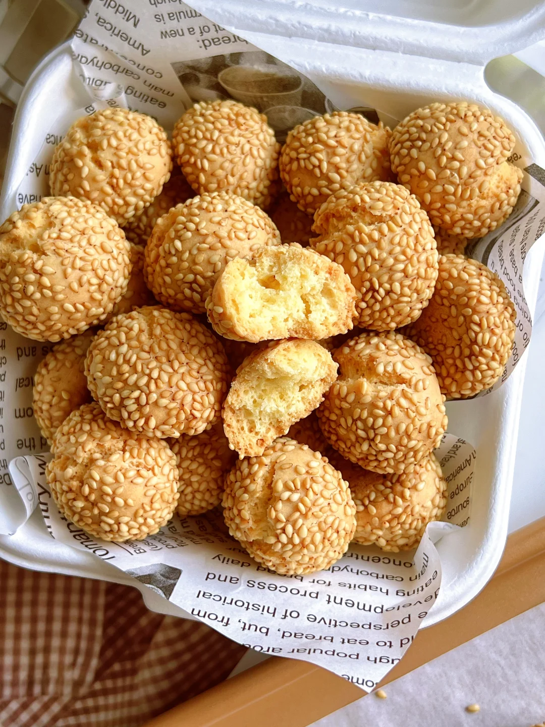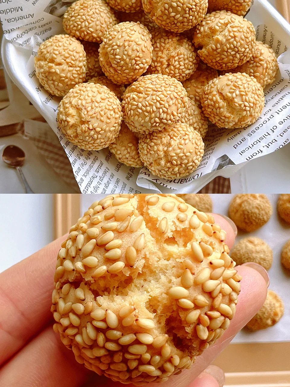 3️⃣戴手套分成10g一个剂子,揉圆,表面裹芝麻搓一搓