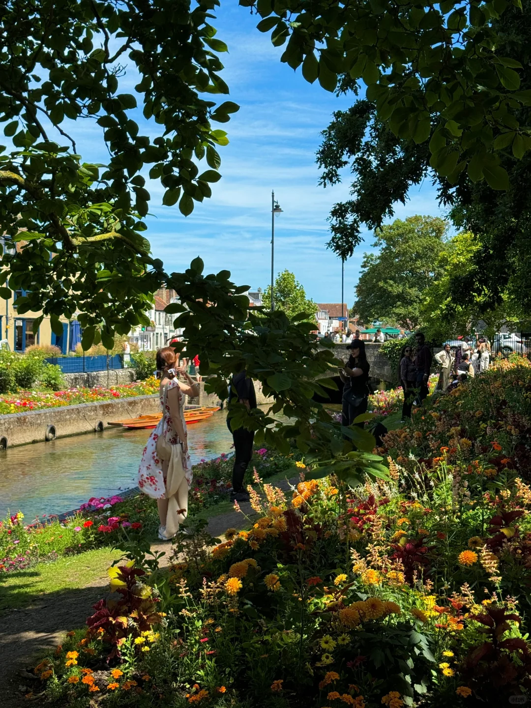 📷今天到了英国• 坎特伯雷 这里是伦敦的后花园小镇 有“英格兰花园”之称 而Canterbury 美的像油画一样 - 📌拍照地点在:西门花园 westgate garden 更是美的不真实美丽清澈的护城河 河流旁种满了五颜六色的鲜花和缓缓划过的小船 仿佛走进童话仙境 公园的人们也都是非常松弛的感受大自然的氛围 这种感觉太棒了 只有live原图直出才能让你们感受这样的美丽