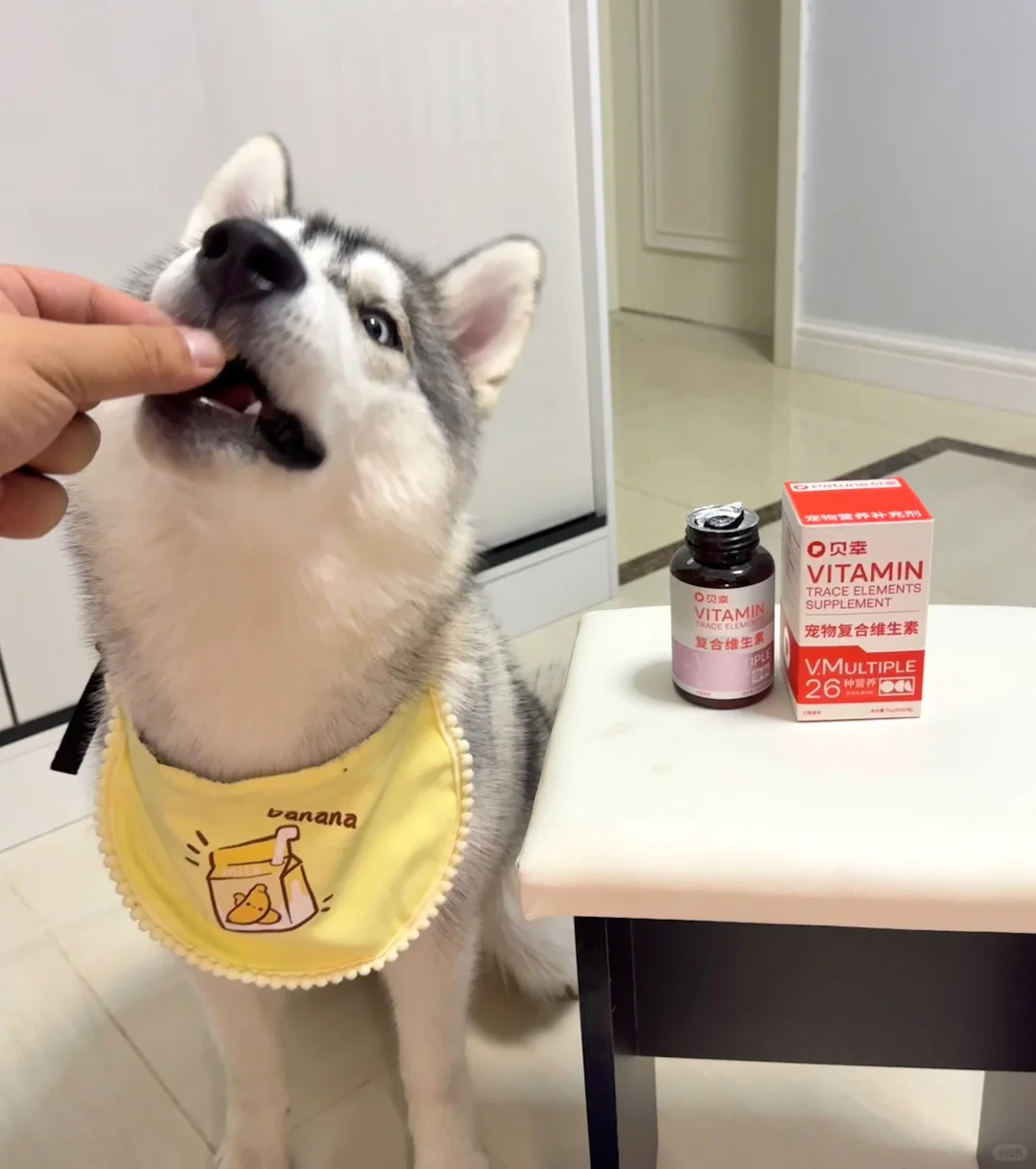 里面有多种维生素、微量元素和皮毛营养都很齐全,一颗完完全全覆盖率狗狗日常所需的营养