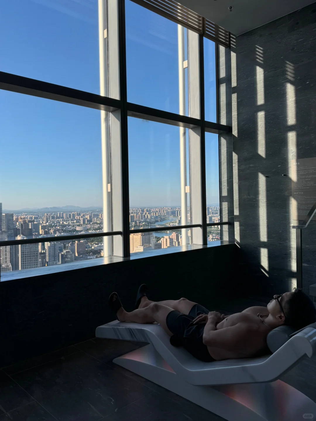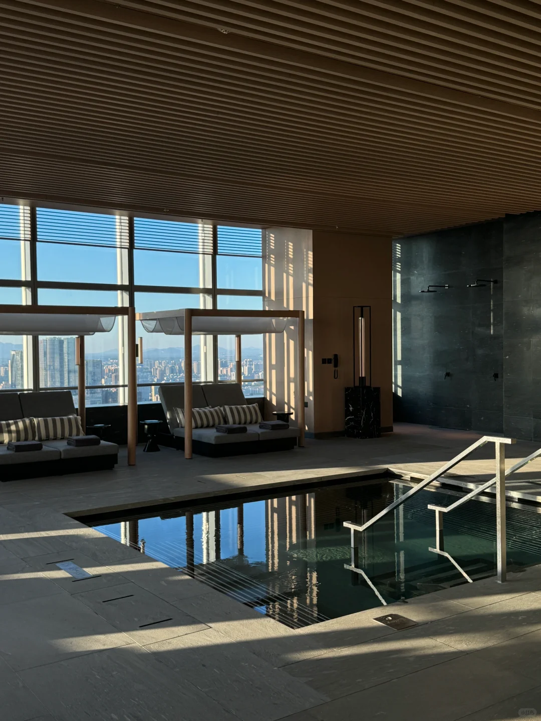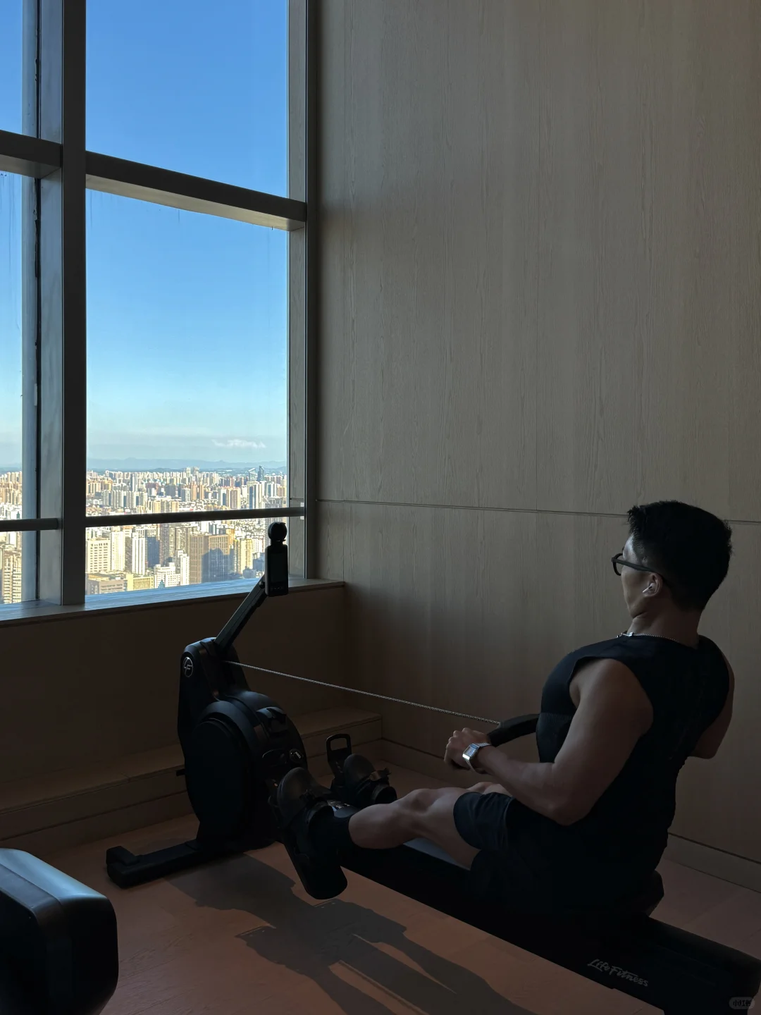 📷就在长沙柏悦的48层健身水疗中心 不得不说非常amazing 🏋️🏻‍♀️江景健身房还有一个lounge里面有坚果、水果、能量棒、酸奶等,这个设置简直对健身爱好者太贴心了 🏊🏻‍♀️游完泳了还有活力热水泡池设有气泡按摩座椅,可放松肌肉;再去加热躺椅上放空自己欣赏城市美景 全网最火的体验式淋浴一定要体验,记得选加勒比风暴模式 👌🏻宝子们赶紧去码住同款