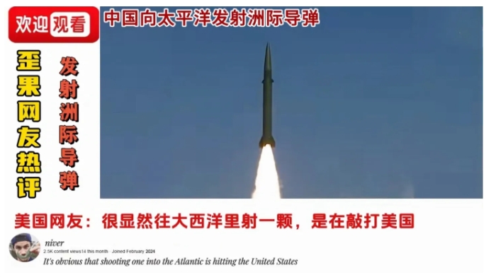 4,美国网友:很显然往大西洋里射一颗,是在敲打美国!(美国喜欢对号入座,我们就没办法了,另外,先把太平洋和大西洋搞明白再说)