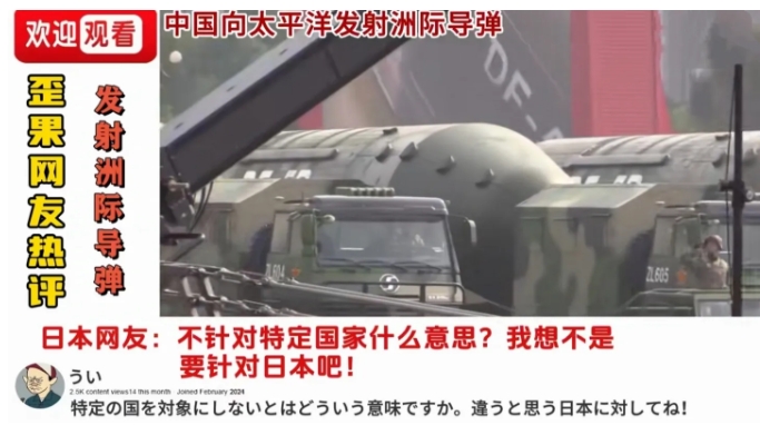 2,日本网友:不针对特定国家什么意思?我想不是要针对日本吧!(和韩国一样,东风-31AG也不是给你们准备的)
