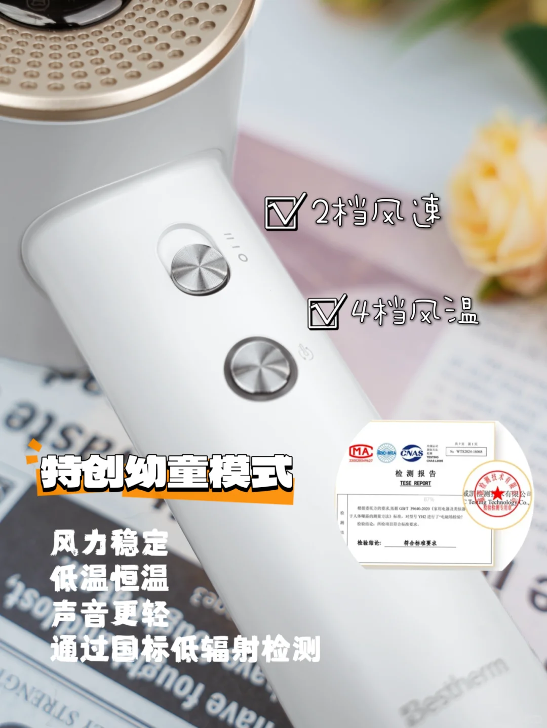 成人吹风机风速温度高,辐射大 想给娃单独买一个吹风机,又觉得鸡肋占地? 诶嘿~这台百斯腾高速吹风机包了! 有大人们喜欢的高速恒温干发体验 电机转速猛,出风力风压很大 可以直吹发根底部,5分钟内吹干一顶长发 温度有电子芯片精准把控 不会有老实吹风筒的忽高忽热感 自带的幼童吹风模式,这下娃们全老实了 适合孩子的风力温度,都给你把控好了 还通过国标低辐射检测,放心用! 短发约1分钟速干,宝妈们省事了~ 自带负离子,吹干后发丝不会毛躁 用一段时间,也明显发现发质变好 柔顺有亮泽,减少分叉静电, 经常烫染的姐妹更需要换上它 2档风速,4档吹风模式+幼童模式 同时满足了一家老小的吹发需求 让吹风机不再二选一[哇R] -