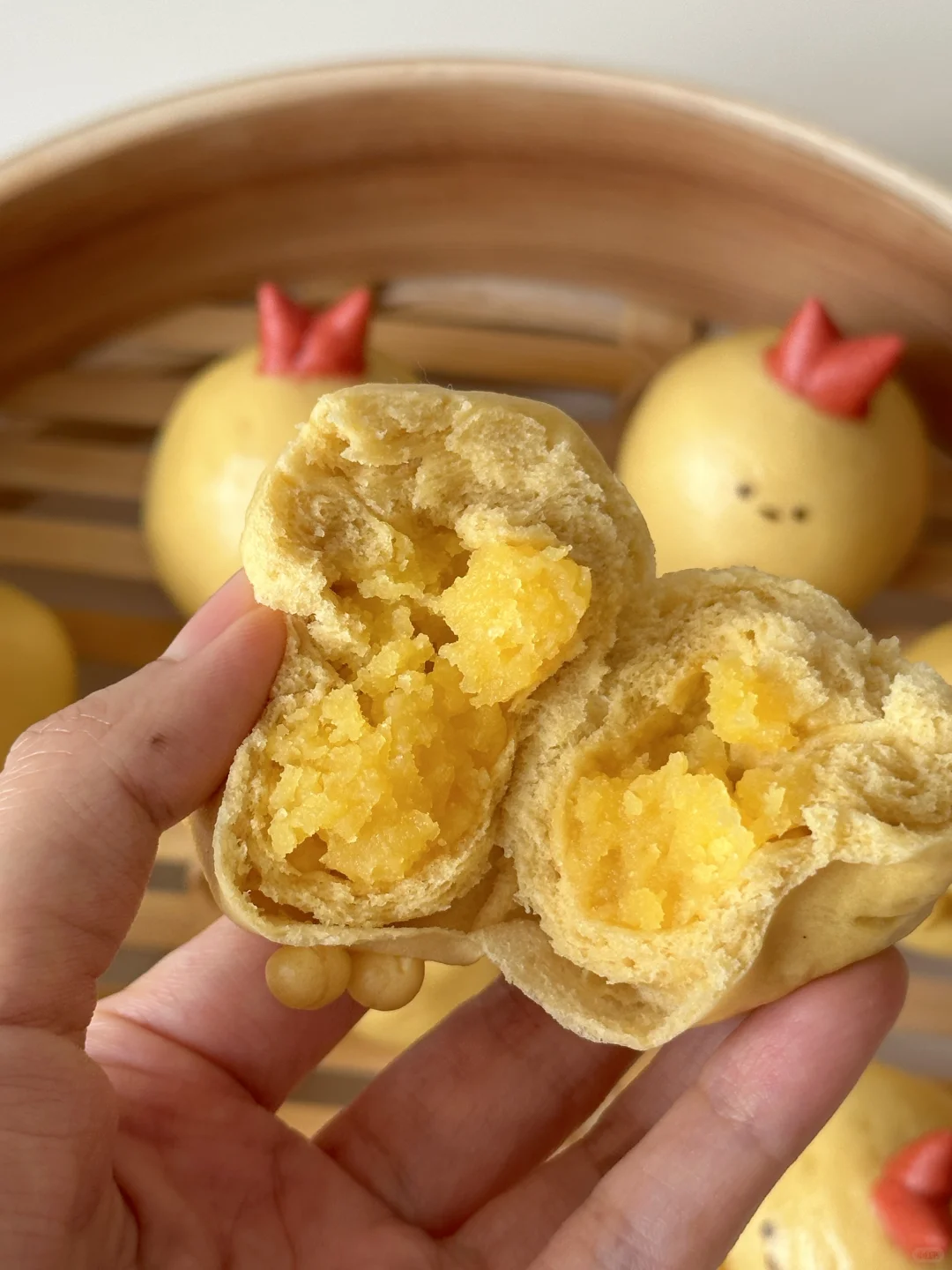 奶香奶香一口一个的可爱小炸虾馒头,内里还是糯糯的奶黄馅儿,不加一滴水,只加了好喝的牛奶[吧唧R]