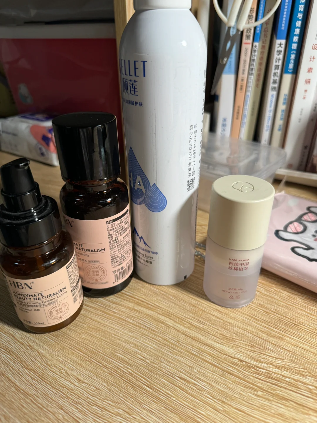 我护肤品比较少,图六基本上是所有护肤品了,大家可以看一下,我每周会敷两次面膜,都是成分简单的补水产品,这里不做推荐。