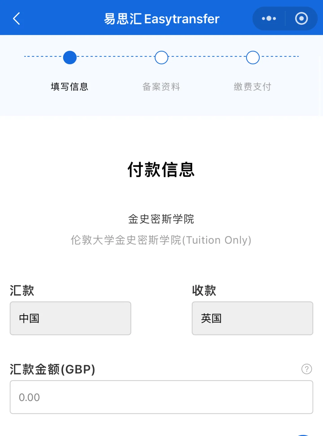 第4步:补全转账信息,每一步需要的信息都会有清晰