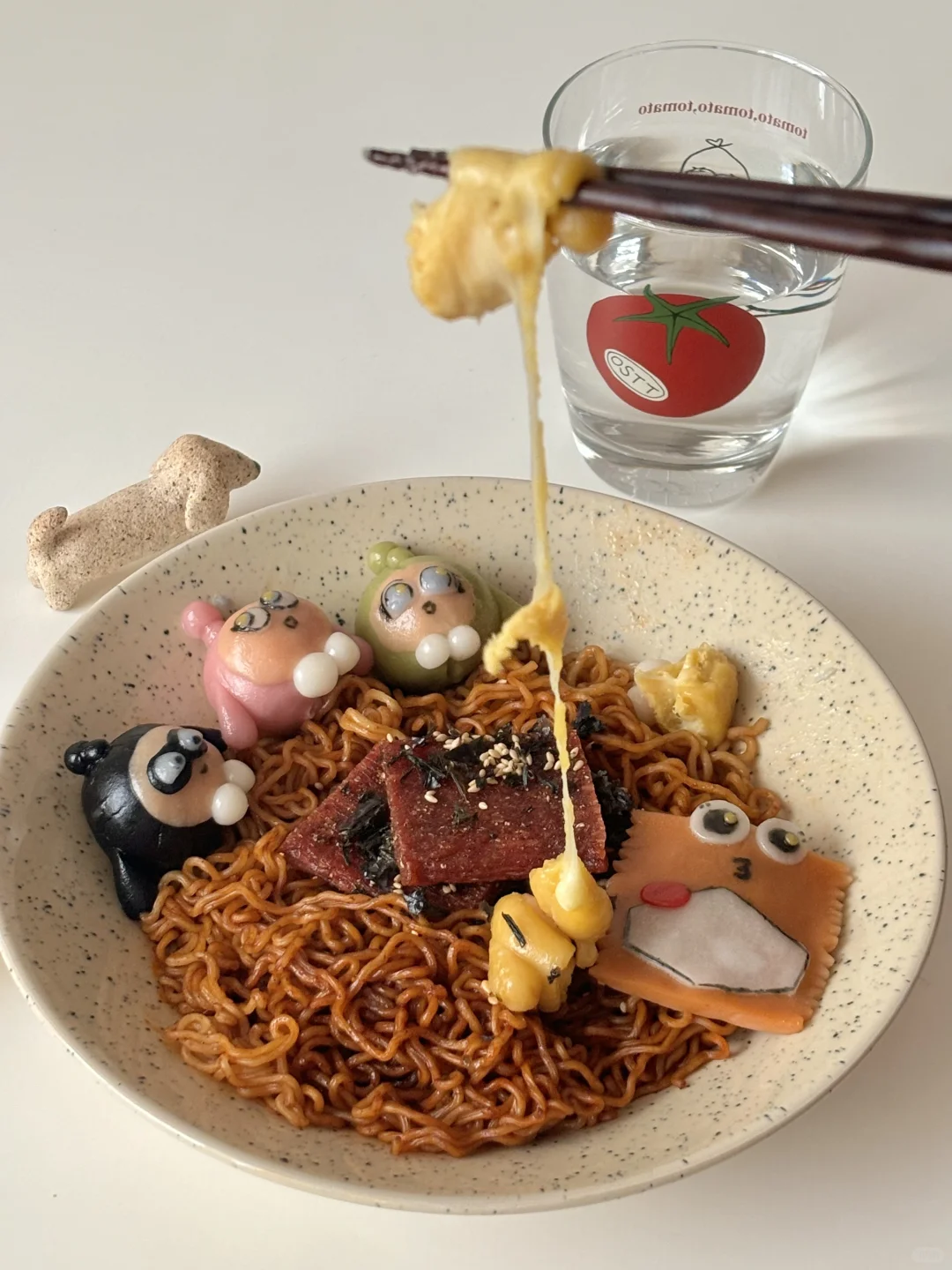 亲嘴烧和芝士拉丝年糕真的成为了火鸡面的灵魂和点睛之笔耶,快来试试吧~
