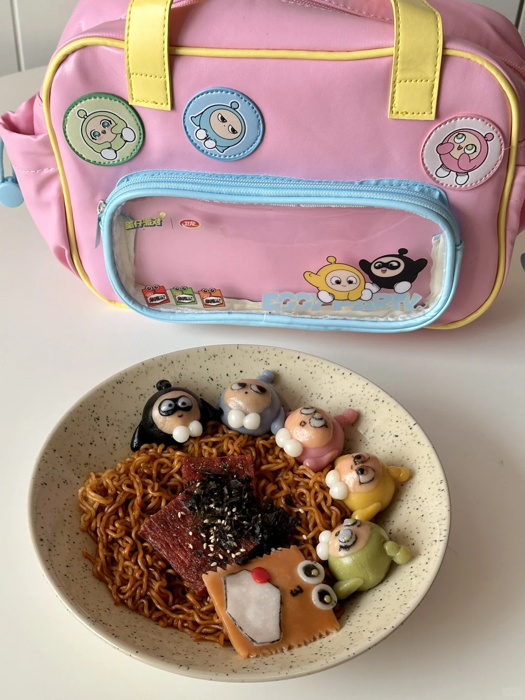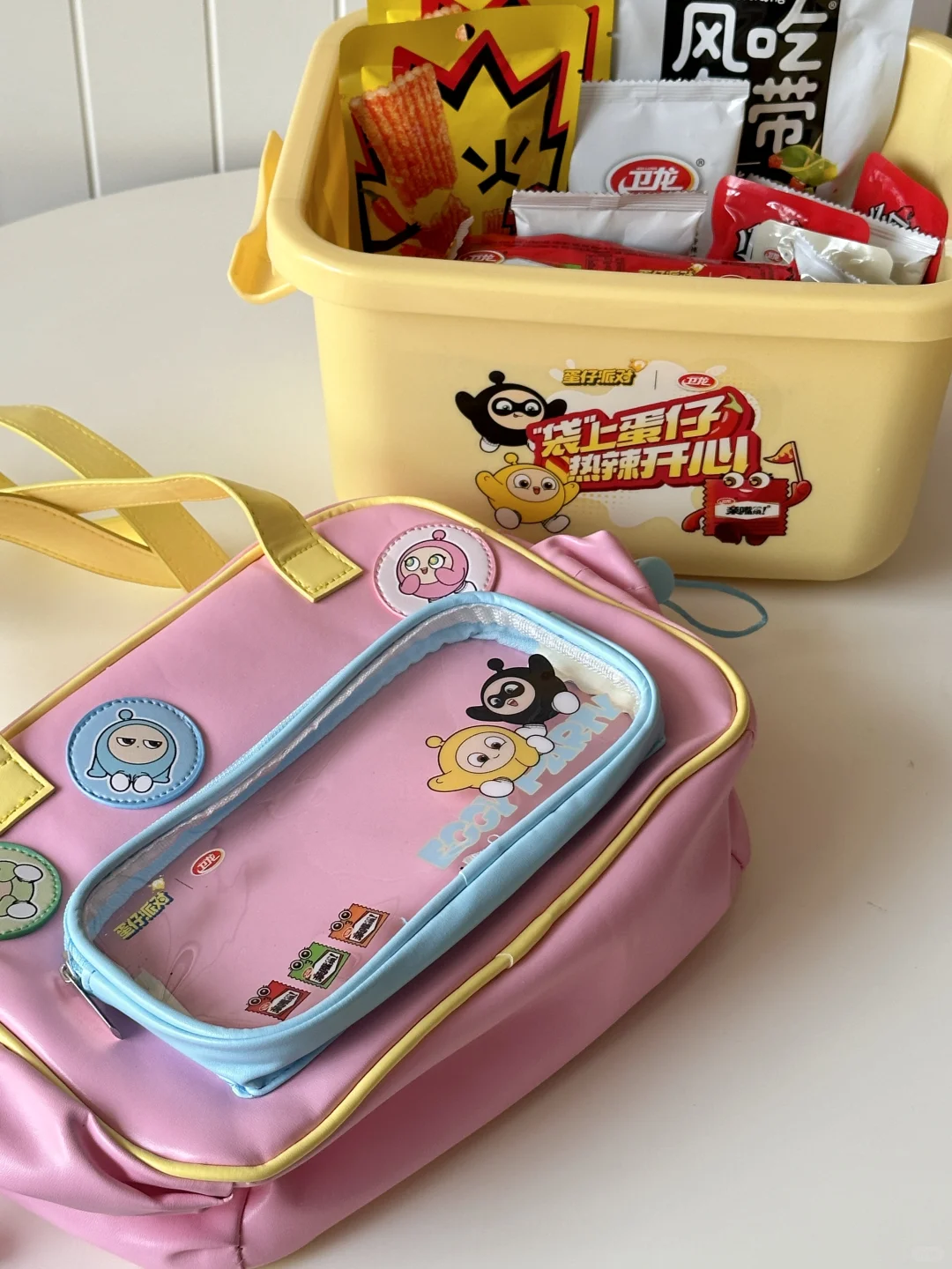这次芝士蛋仔和亲嘴烧拉丝年糕的灵感,来源于卫龙亲嘴烧和《蛋仔派对》联名痛包上面的可爱蛋仔形象,包包粉粉嫩嫩的也很元气,还能diy,一整个爱住了,而且痛包超能装~