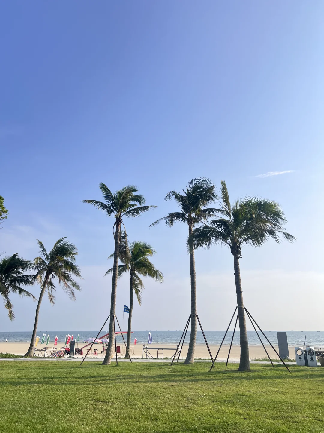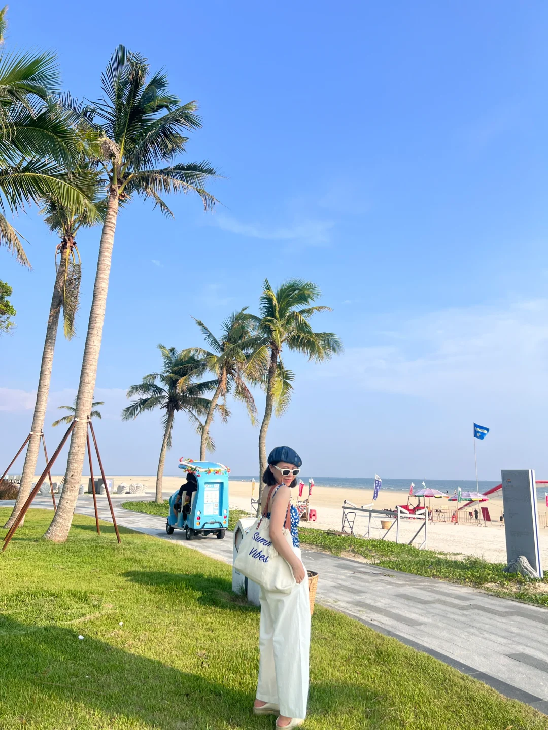 回老家这段时间,发现了海边好几个好玩又好看的地方,银滩也超级出片~ 📍路线:北海银滩里•自由地(66赶海基地) 🚗我们是直接打车到银滩正门,然后坐观光车直接到自由地,也可以走路过去,一路要走20分钟左右,一路风景都很不错 🅿️:大路进去有个停车场的抬杆,直接开进去最底海边有停车场哈 💴:自由地是一个咖啡吧,也可以露营,可以点吃的喝的,然后可以落座,拍照也很不错,小朋友还可以玩沙子 我们在自由地逛了一下,然后就往银滩大门一路走,一路上都有栈道和树荫哦,还有一个秋千拍照,我们在半路就停下来让孩子玩耍,人不多,而且拍照美美呢