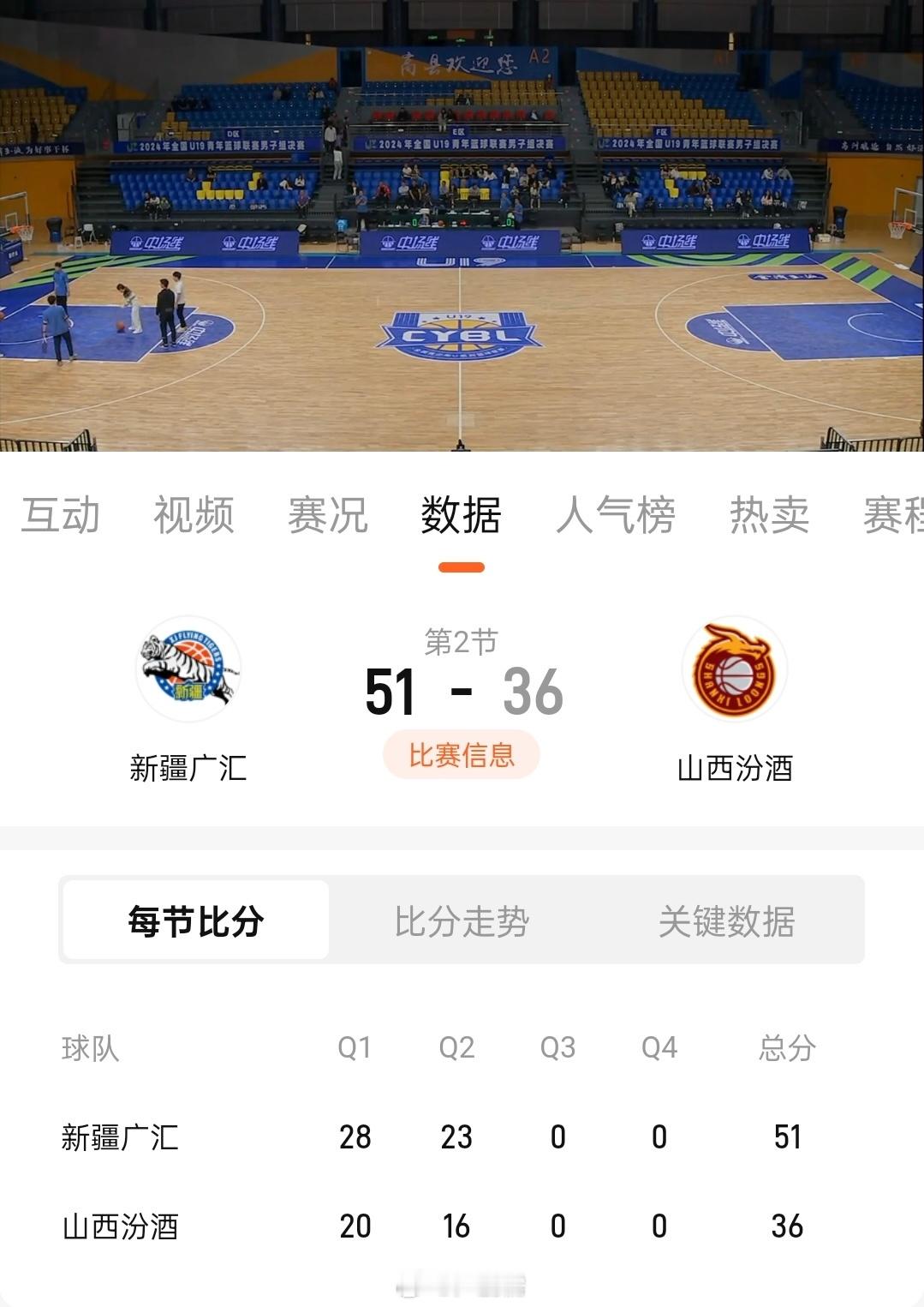 U19八进四小葛又火速回归支援一波半场结束,新疆51-36山西#有篮无界心潮无