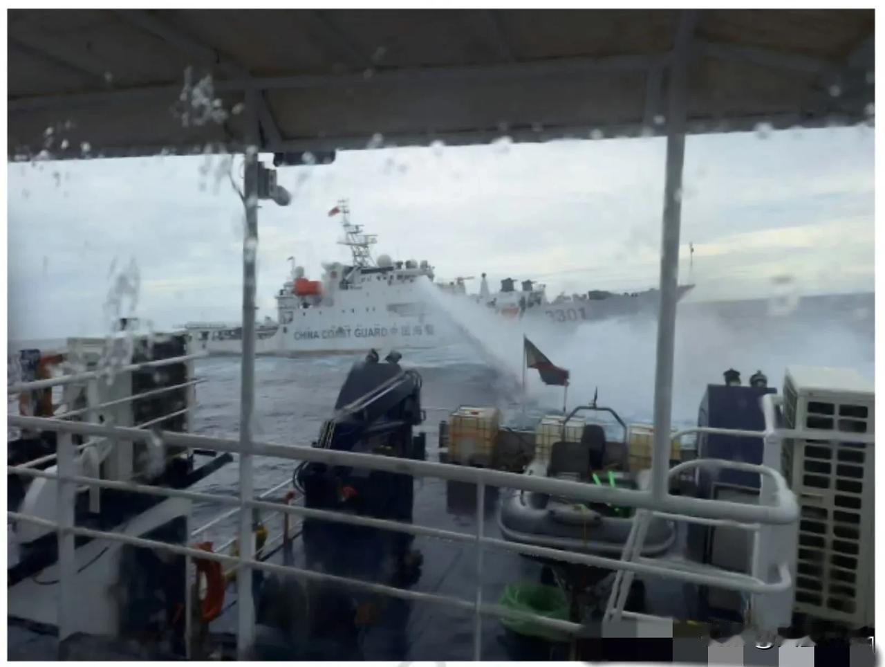 【海警】2024年10月8日,中国海警在我国黄岩岛附近海域对非法侵闯的菲农业部渔业与水产资源局(BFAR)“卡巴伊洛拿督”号(BRP Datu Cabaylo,MMOV3001)和“桑迪拿督”号(BRP Datu Sanday,MMOV3002)两艘渔政船依法驱离,中国海警3301舰在警告无效的情况下,动用水炮对菲船进行必要管制。#支持祖国渔船# #如何看待菲律宾挑衅# #菲律宾海警# #为中国渔船点赞#