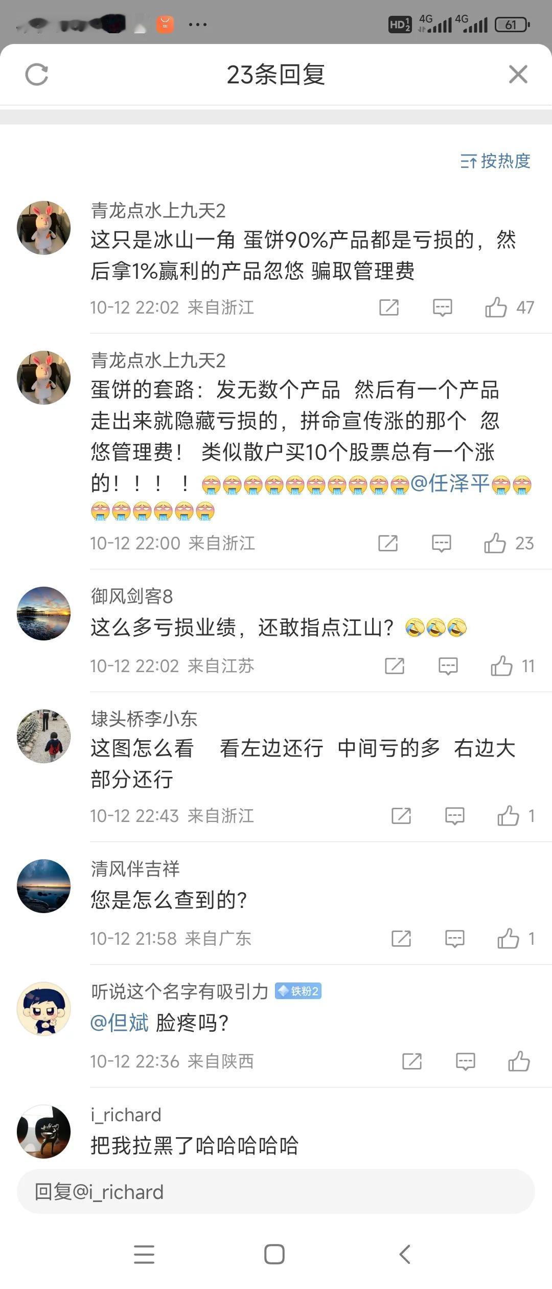 说些业内真相,有怪诞的人风格激进,公司产品业绩大面积亏损,腰斩,天天宣传飘红的几个,给投资者亏了这么多,从来没有正式道歉过,还天天吆喝炫耀。好的就说是自己的功劳,差的就甩锅给自己公司员工和临时工,人尽皆知。 一边说提醒投资者注意风险,要理性,一边自己风格激进,拿投资者的钱激进豪赌血亏,为了巨额管理费。一边说爱国,一边踏空A股,拿国内投资者的钱去炒美股,这么做也就算了,还高调唱空中国市场。毫无底线,虚伪,不诚实,业内人送“但不群”。被坑的大量中小投资者诉苦无门,经常被拉黑。希望大家擦亮眼睛。 再次重申,我跟任何人没有任何个人恩怨,有的人我也从未见过,只是看不惯这种行为。在关键时候,踏空看空也就算了,看空中国经济和公共政策。宏观上是数据,微观上是多少家庭的悲欢离合,这样做良心不会痛吗?还是良心早亏没了? 以前我跟对民营经济喊打喊杀的坏人也辩论过,这次不得不再次跟这种关键时候唱空中国市场和经济的典型代表辩论,完全是激于公义。看到有人干坏事,总要有人站出来。我相信不是我一个人在努力,大家一起努力,未来一定会越来越好的!期待中国经回升复苏,市场繁荣发展。