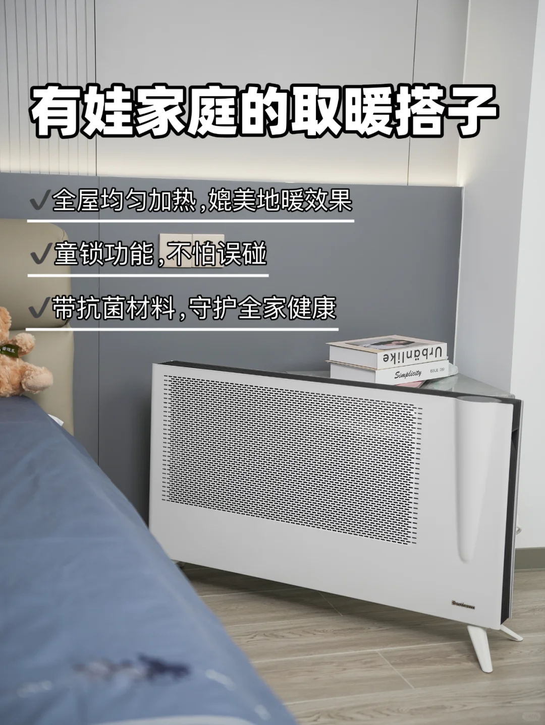 🔱在提供温暖的同时还能释放钠离子抗菌材料,冬天紧闭门窗空气不流通,有它就安心很多~