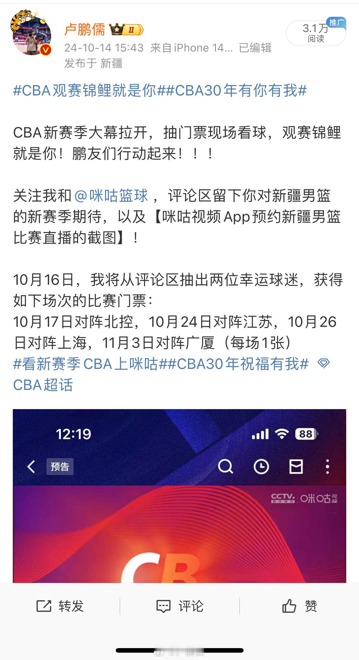 恭喜这两位鹏友获得接下来四个主场门票各一张,私我信息哟[偷笑]#有篮无界心潮无限