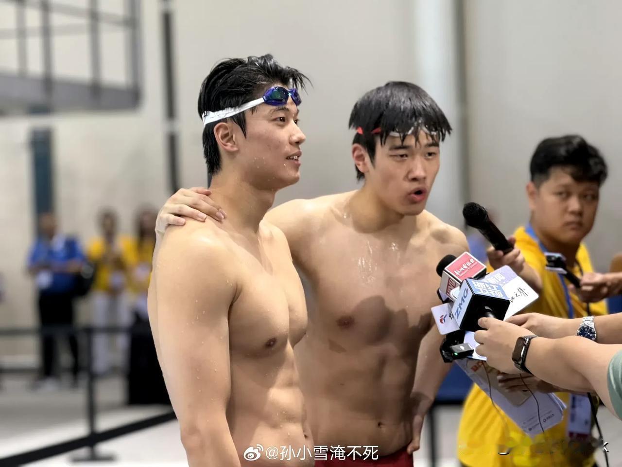 汪顺和潘展乐这是整活吧!没想到成绩还不错[捂脸] 本来汪顺主项是200米混,潘展乐是100自,结果汪顺为了满足潘展乐的愿望,陪他报的100米混,没想到拿了第四名,潘展乐成绩也不错,拿了第六哦! 乐乐真的是全能呀!啥都会 网友:好消息,混 泳紫薇星出现了,好消息,是现有紫薇星(蓦然回首,那人在100自检录处[捂脸])