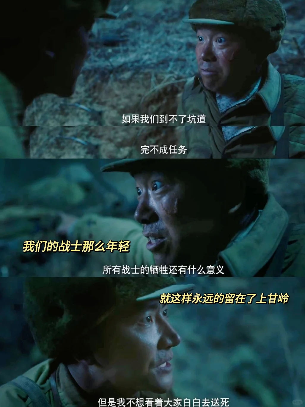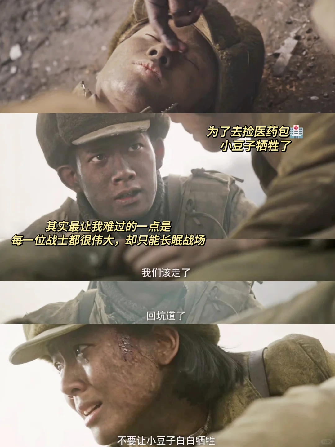 最近看电视剧《上甘岭》,真的把战争的残酷真实地展现在眼前了💧 . 特别大的一个感触就是每位同志都在用生命在践行每一句誓言和每一个使命❗ 无论是这两集卫生员冲出去捡医药包,为了更多战士的安全和治疗,最终小豆子牺牲😢 还是段晓峰战后应激🫀颤抖地说出“我不怕死,我只怕不能完成我的使命”都特别让人难受… . “我也渴望没有牺牲的胜利” 战友在双喜面前被杀,去坑道的路上段晓峰想要找到减少伤亡的办法濒临崩溃🥺 我们的战士们那么年轻却永远留在了上甘岭⛰️ 战火纷飞,硝烟弥漫,仿佛那些场景都再一次重现在眼前❄️ . 沉痛、尊敬、愤怒、钦佩,每一个词好像都没办法概括看了这些的情绪,只好长久的记住🍂 或许,不断延绵传承这些历史记忆也是这部剧想表达的吧‼️