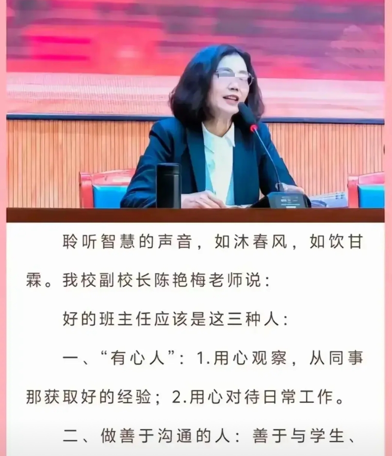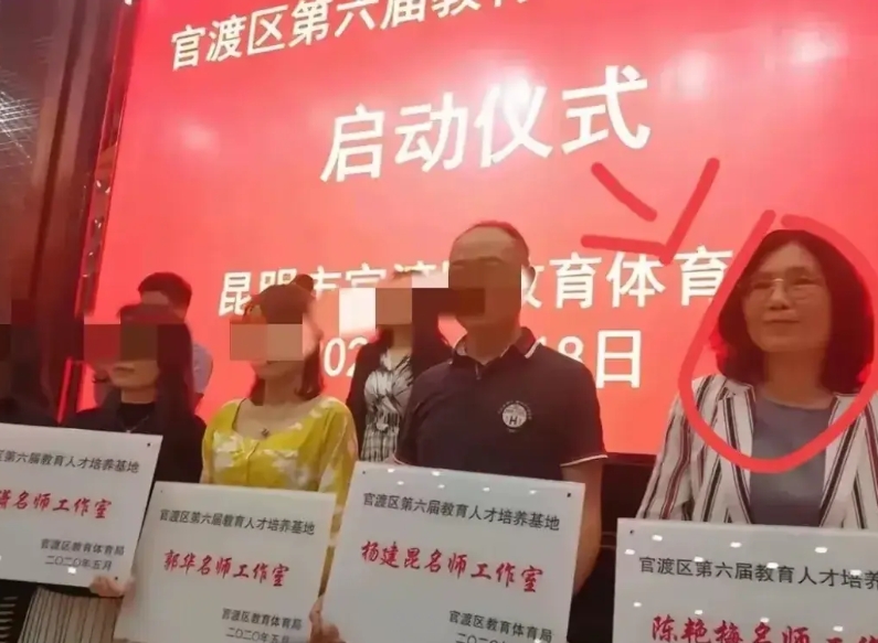 发现了,找到了!正是此人,涉及昆明长丰学校臭肉事件的那位红衣女子,其真实身份已被揭露——她是该校副校长陈艳梅。陈艳梅曾在2020年荣获官渡区第六届教育人才培训的名师称号,名字悦耳,人也长得端庄且有气质。然而,在这样不合时宜的场合下,她却双手抱胸,笑容满面,这样的举止让人深感不适。
