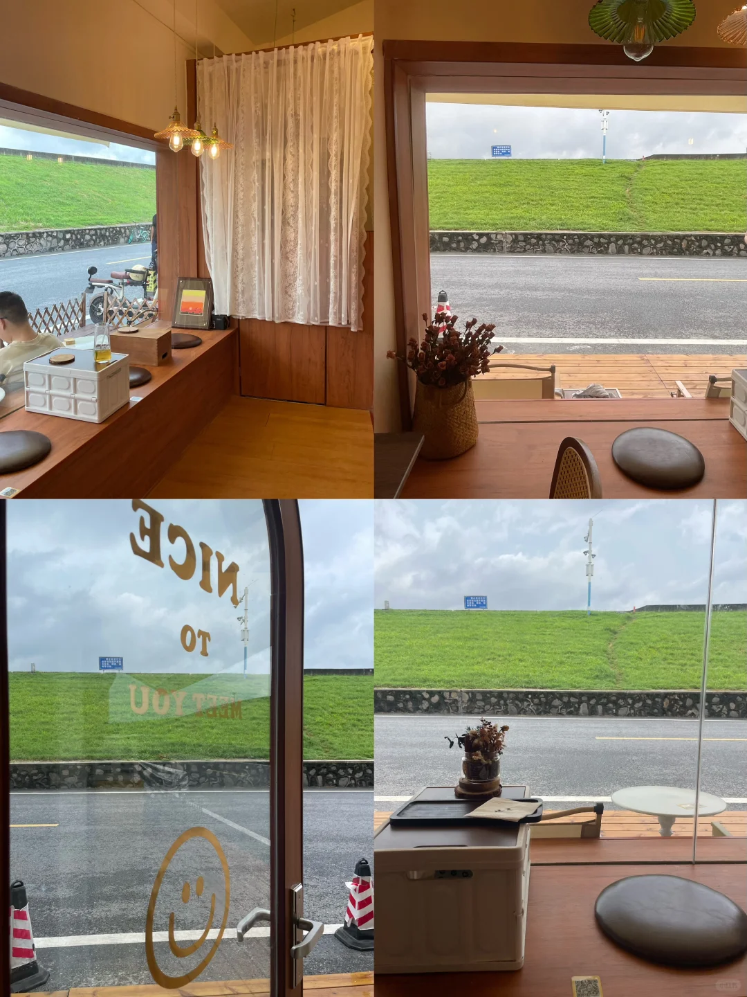 旁边的附近小资咖啡店都很出片,直接对着草地!