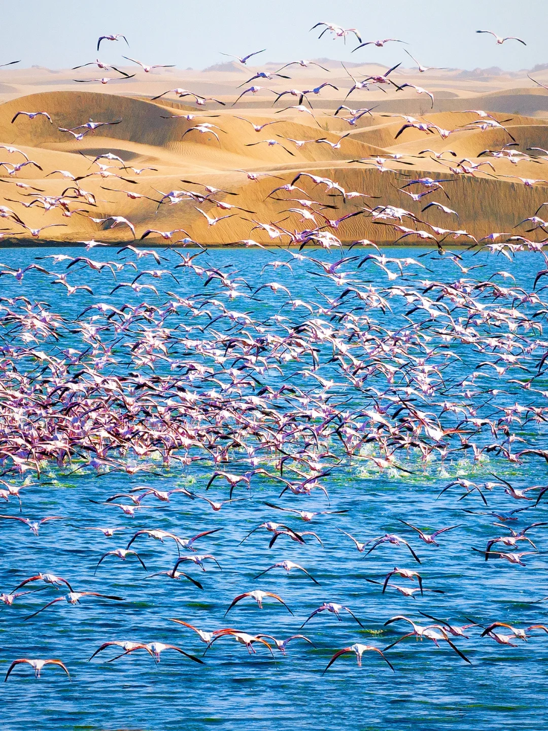 👉沙漠竟跟海洋共存,已经成群结队的火烈鸟