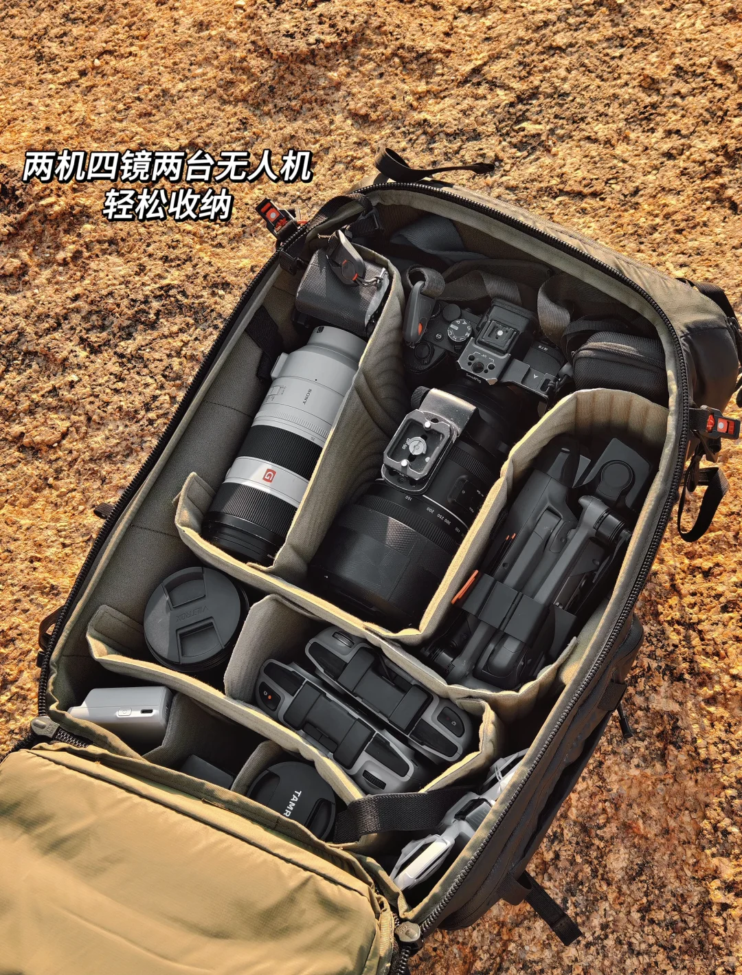作为职业摄影师,这次我选择了PGYTECH的OnePro Focux 35L摄影背包,可调节的背负系统相对比我用过的摄影包都是独一档,背包我装了两机四镜加两台无人机,两个长焦镜头绰绰有余,外拓展还可以放下一台稳定器,长途旅行算是很合适了,搭配背负系统在死亡谷徒步3小时也完全没有问题