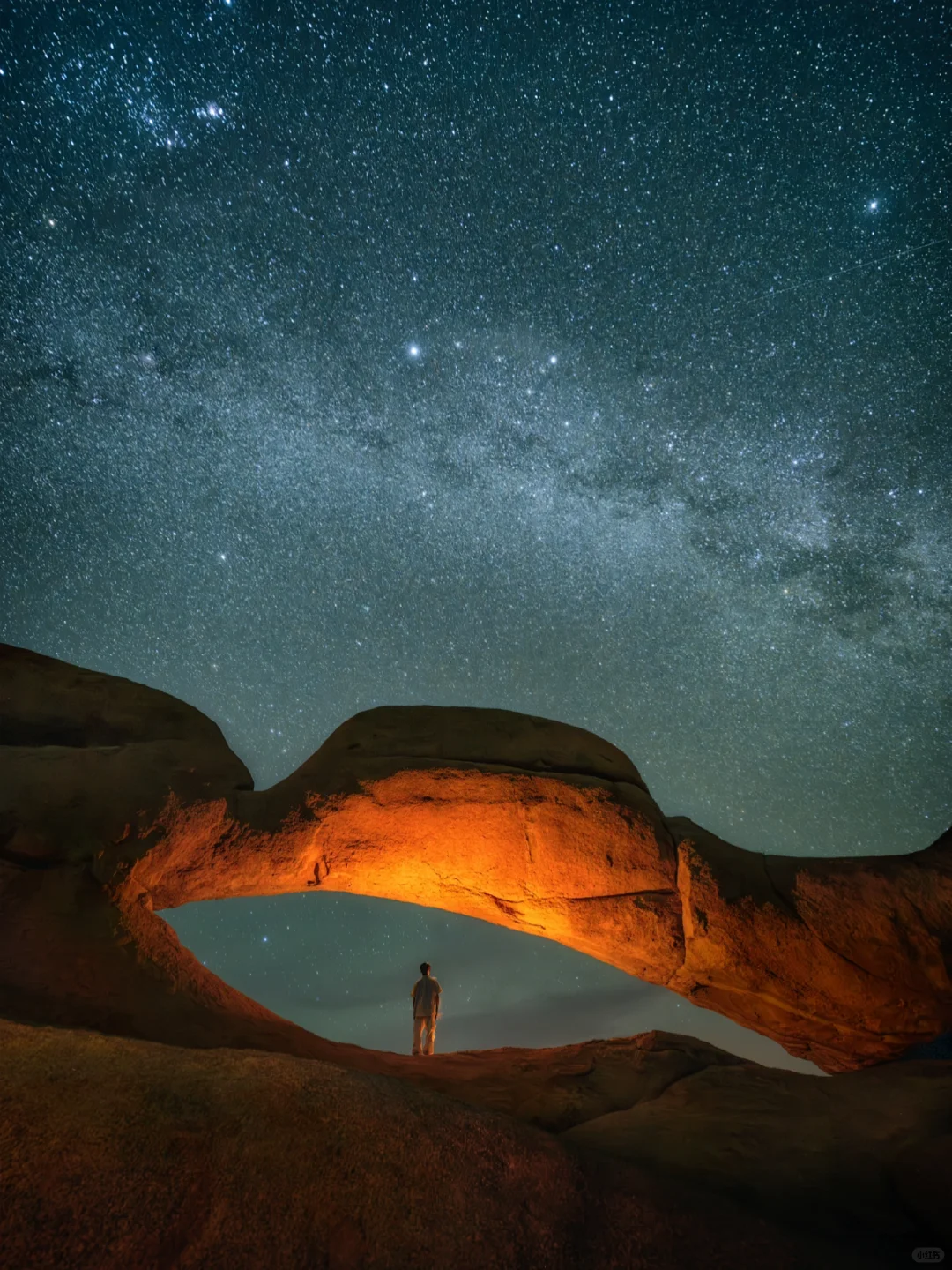 相较于星空下的箭袋树,索斯皮兹考比山这个号称媲美举世闻名的美西“拱门”的网红景点,拱门星空太出片啦✨