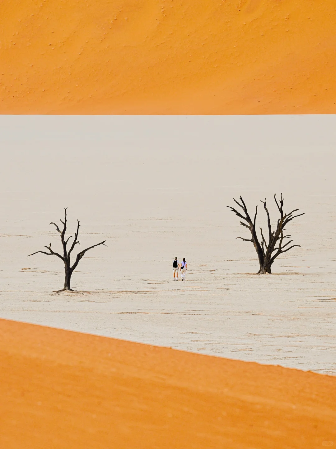 红色沙丘之中,是一片白色的沼泽地以及超过900年历史的古树墓地
