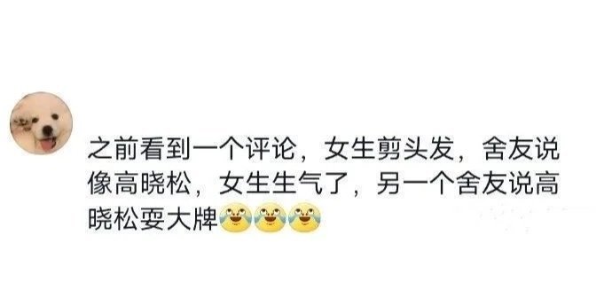 之前看到一个评论,女生剪头发,舍友说像高晓松,女生生气了,另一个舍友说高晓松耍大牌